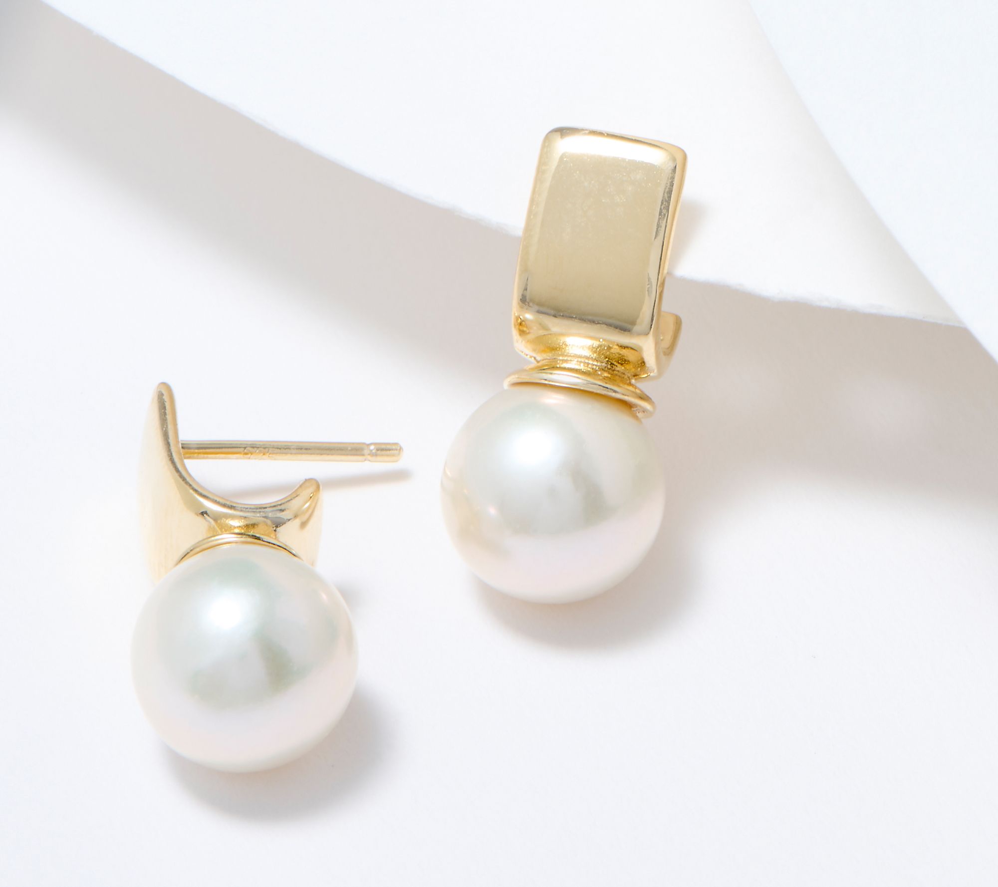 "As Is" Honora Cultured Ming Pearl Geometric Earrings, Sterling Silver