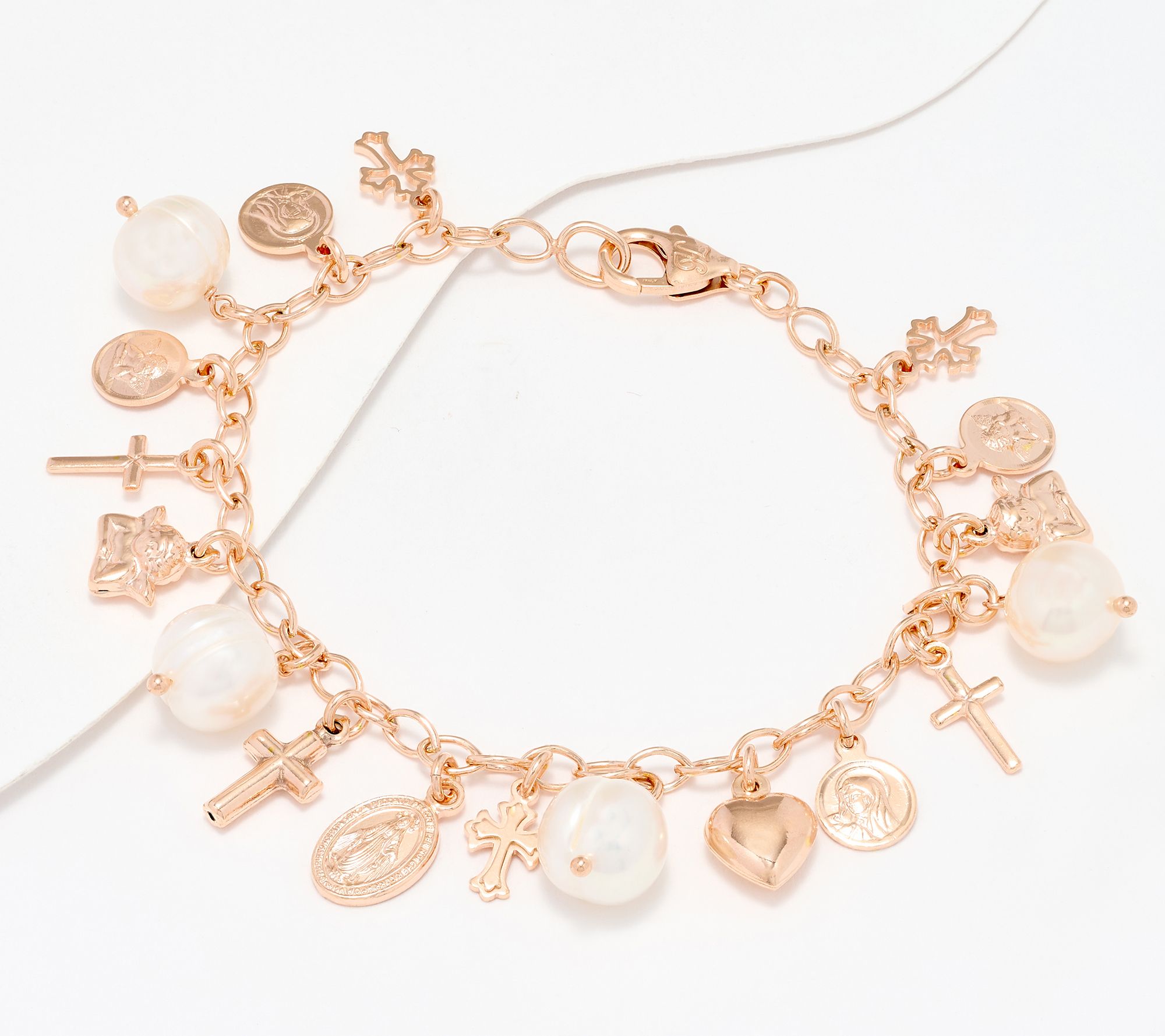 Feeling drawn to treasures that blend spiritual inspiration with effortless elegance? This bracelet adorns your wrist with delicate religious charms and lustrous white cultured freshwater pearls, adding a thoughtful accent whether layered beside your watch or worn solo for quiet meaning. From Honora.