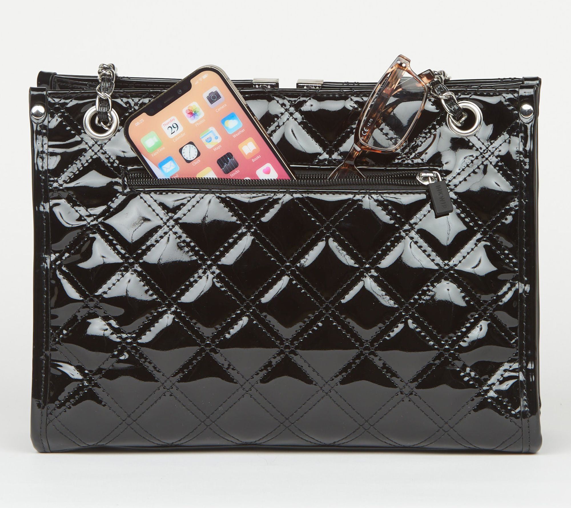 Cheers to five years of IHKWIP! Celebrate any occasion by traveling hands-free with this convertible chain shoulder bag, featuring uber-chic (and water-repellent!) quilting and stylish Roman numeral hardware. Effortlessly switch from shoulder to crossbody wear while keeping your essentials secure with a triple top entry, built-in RFID card slots, and a handy key leash -- perfection for busy days (or elegant evenings) out. From IHKWIP.