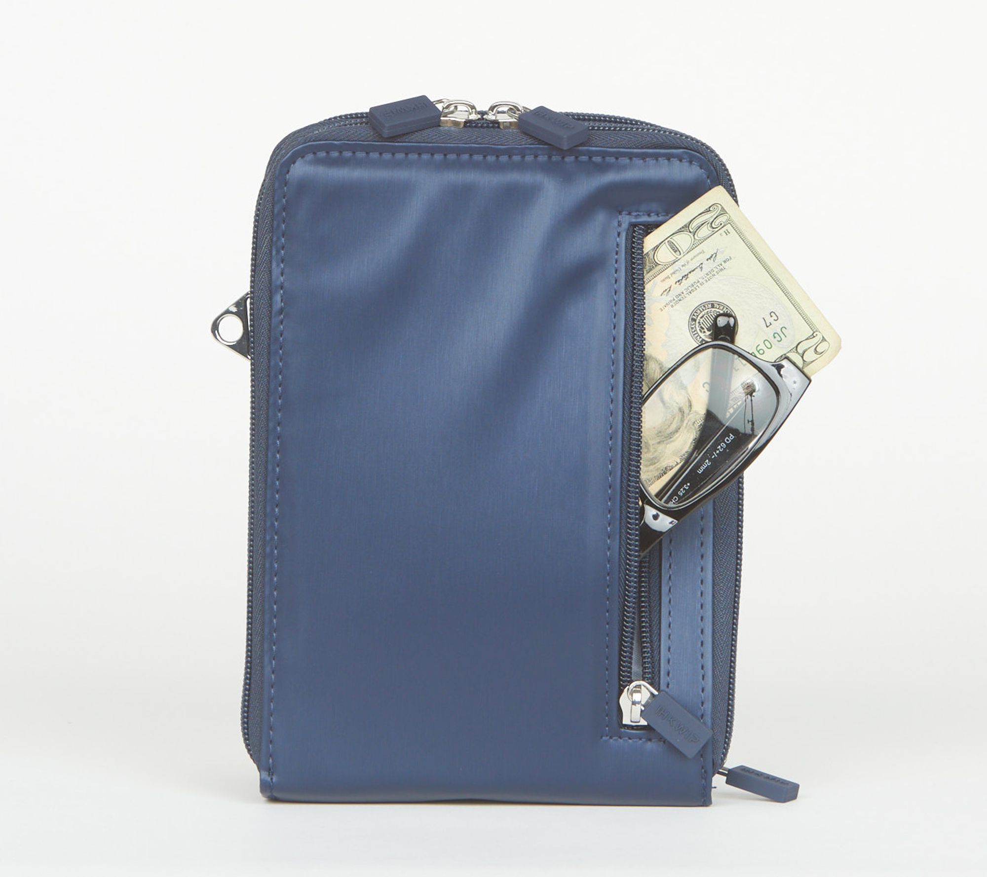 • Light-colored lining, soft-lined phone and glasses pocket, RFID card slots, bill sleeve, change zip pocket