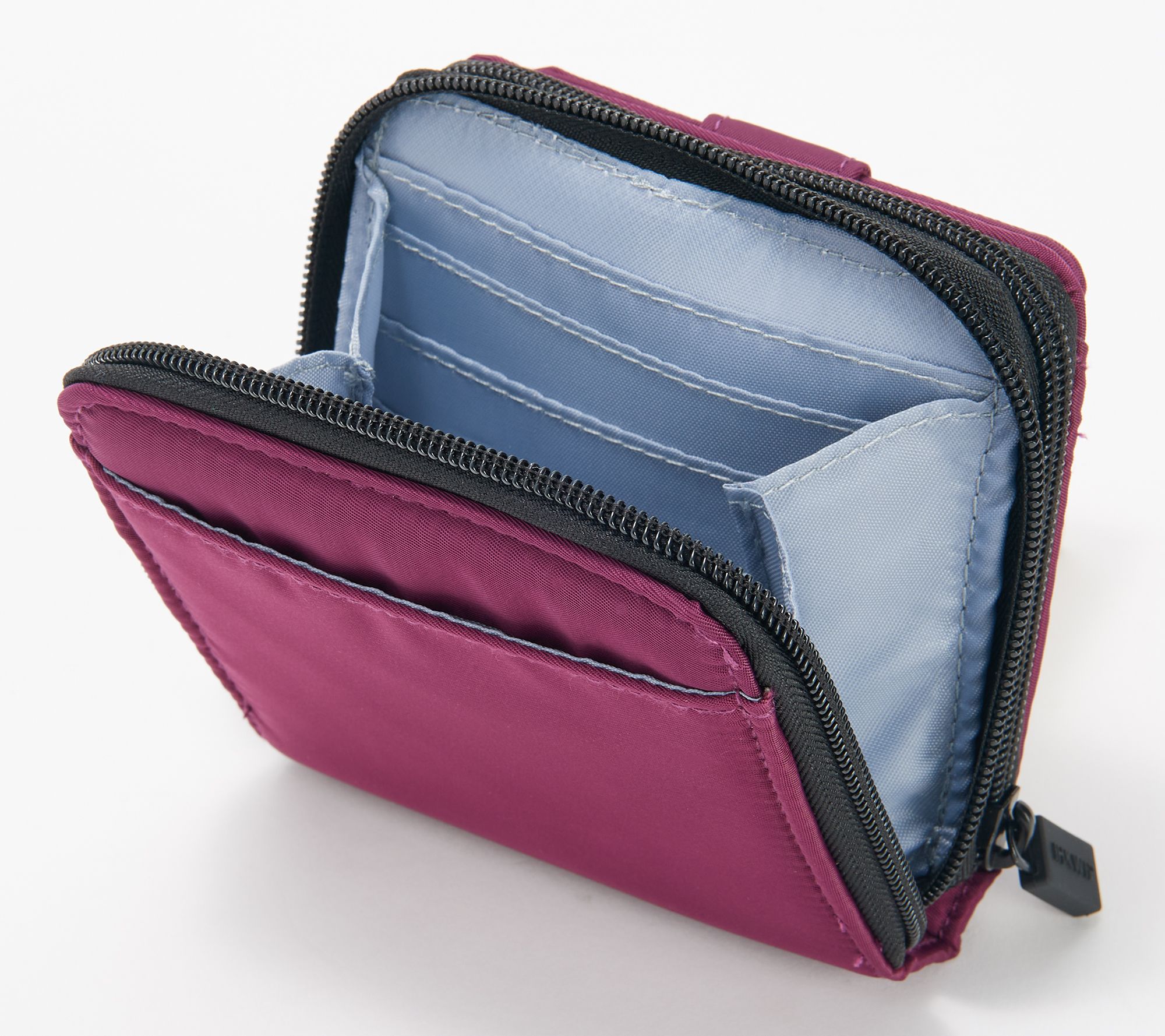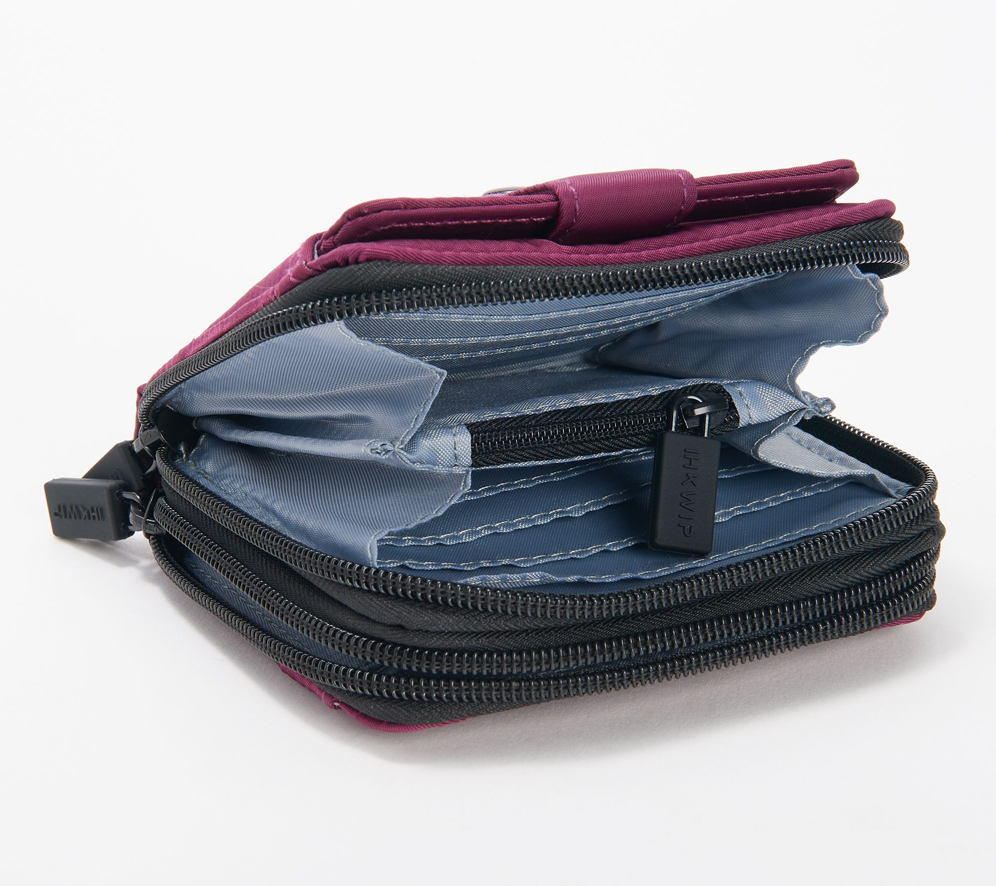 • 12 card sots, zippered change compartment, bill sleeve slip pocket, rear sleeve slip pocket
