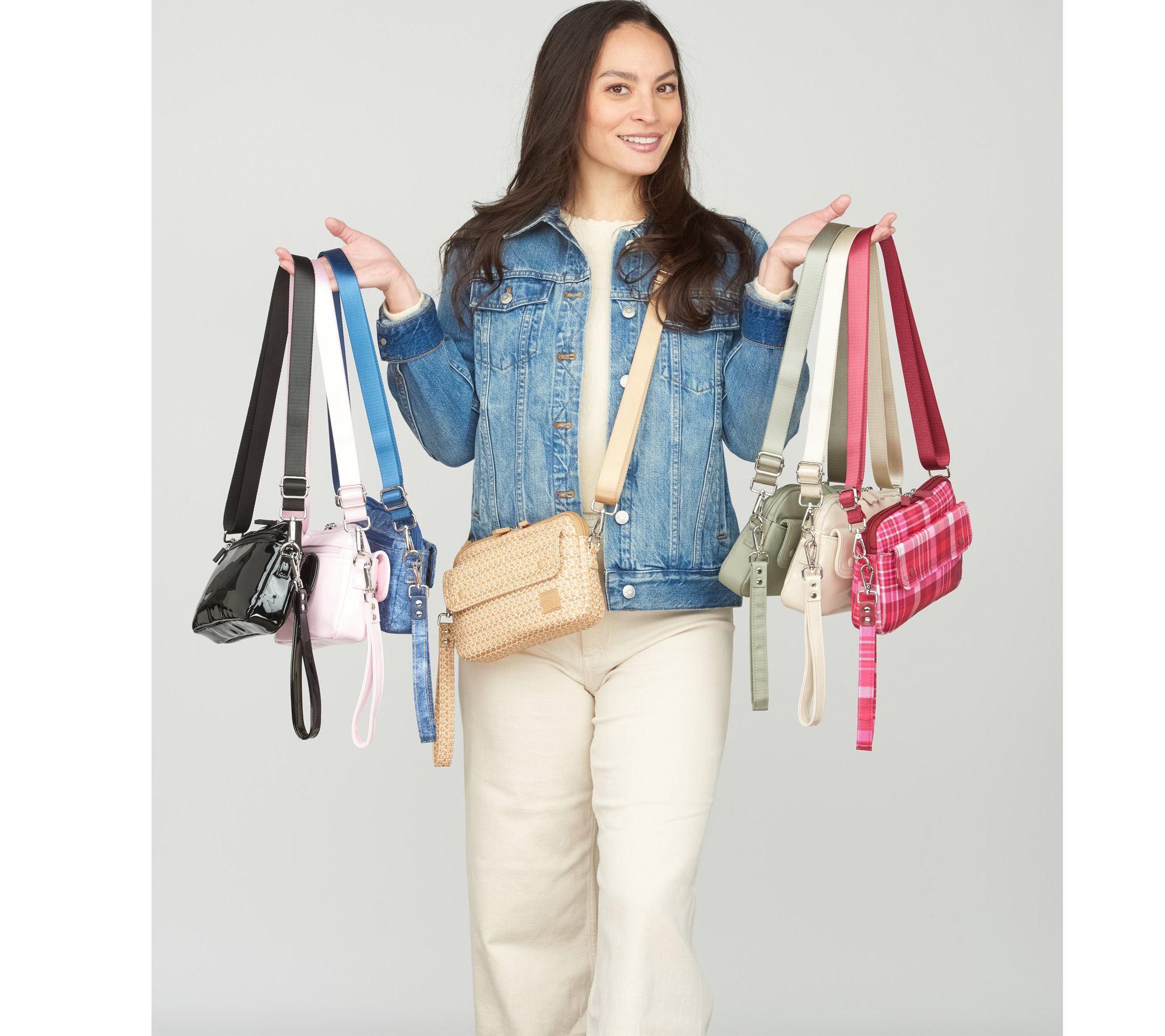 • Measures 8.25"L x 1.5"W x 5.75"H; crossbody strap 28" to 56"; wristlet strap 7.5"; weighs 8 oz