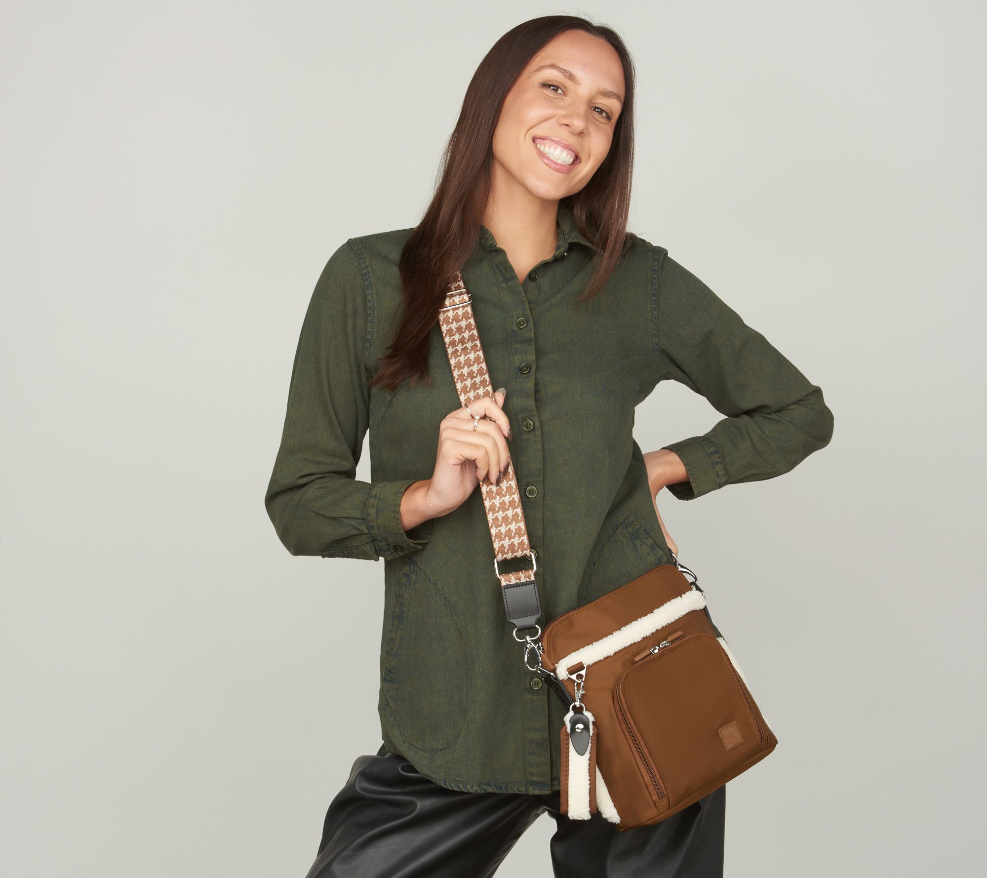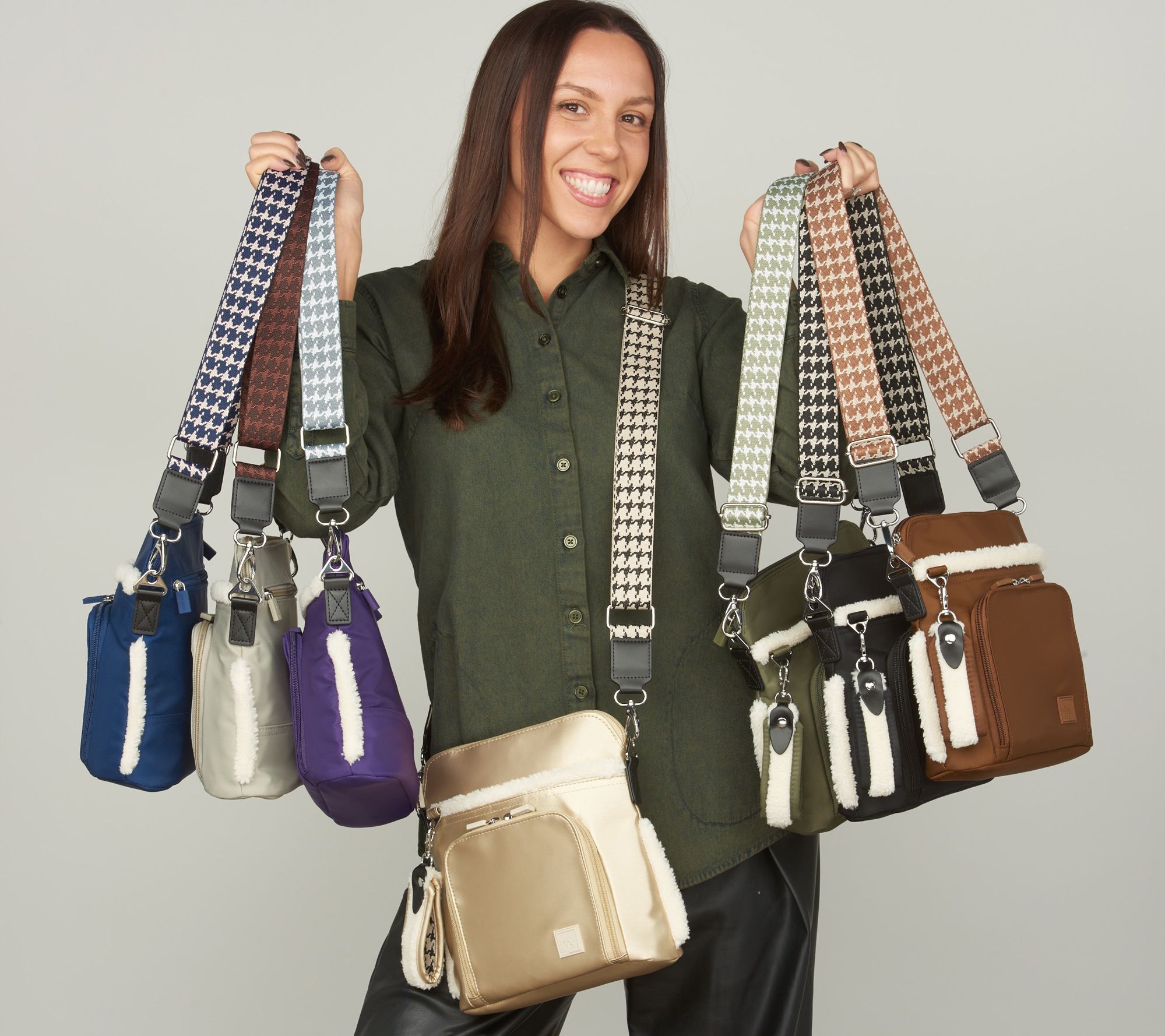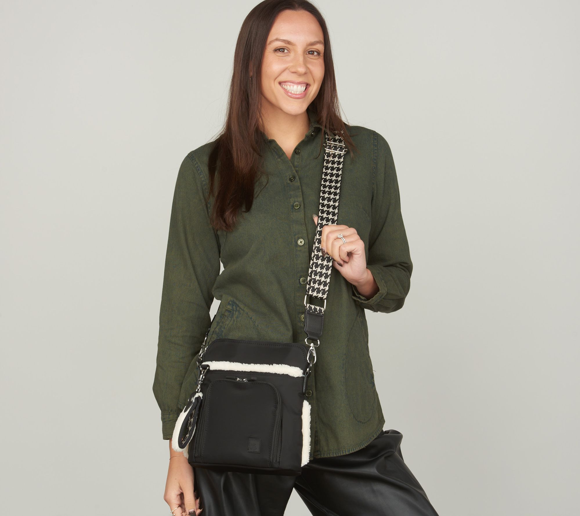 Casually chic, The City crossbody offers versatile style for day or night. Effortlessly switch between a crossbody or shoulder bag for ultimate convenience, while the houndstooth strap and sherpa trim offer undeniable style. From IHKWIP.