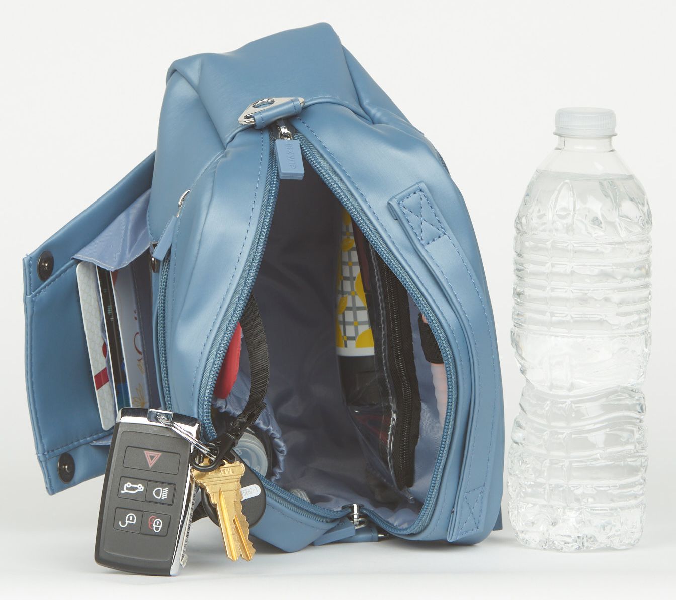 • Measures 9"L x 3.25"W x 6.5"H with a 28" to 56" crossbody strap; weighs 9 oz