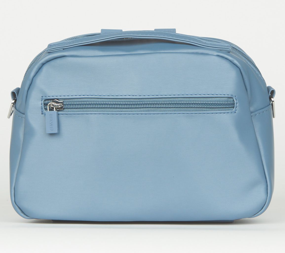 • Water-repellent body, removable/adjustable crossbody strap, dual-zip top closure, front built-in wallet with card slots and ID window