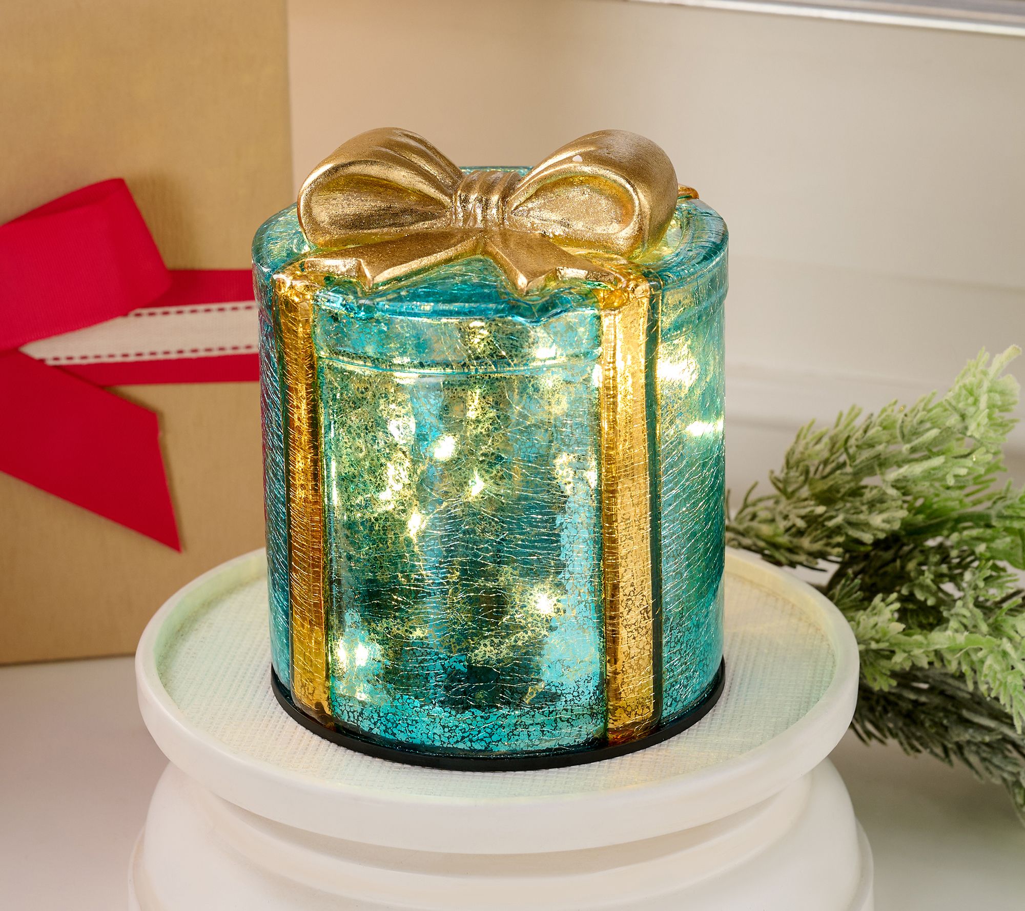 Dress up any dark corner of your holiday home with this festive mercury glass gift box. The crackle finish adds a touch of sparkle, while the timer function makes it easy to set and forget. From the Valerie Parr Hill Collection.