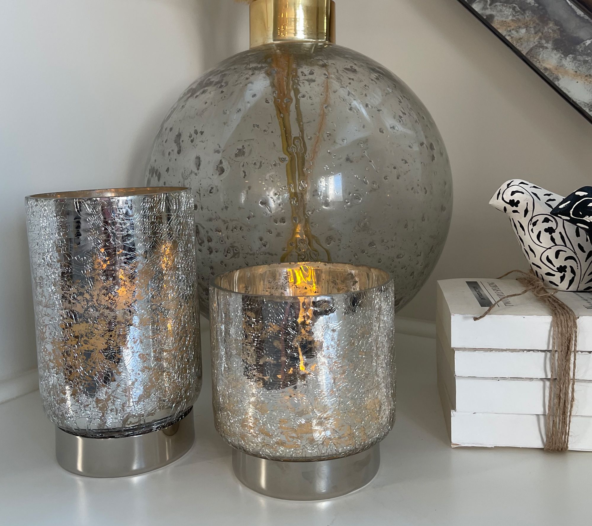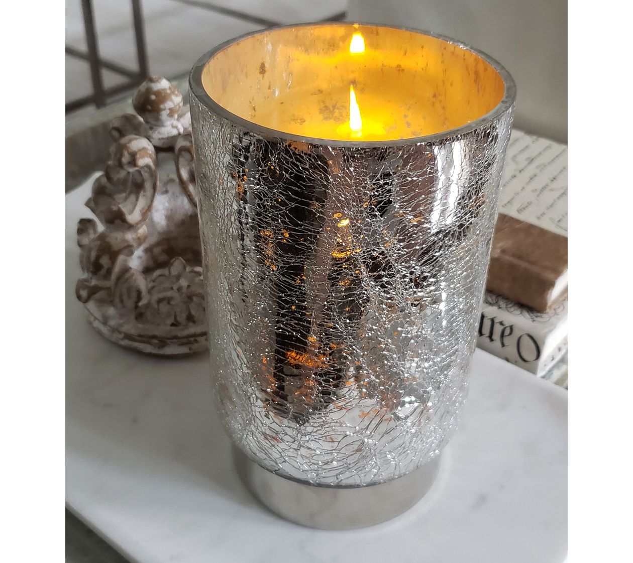 • Crackled mercury glass pillar
