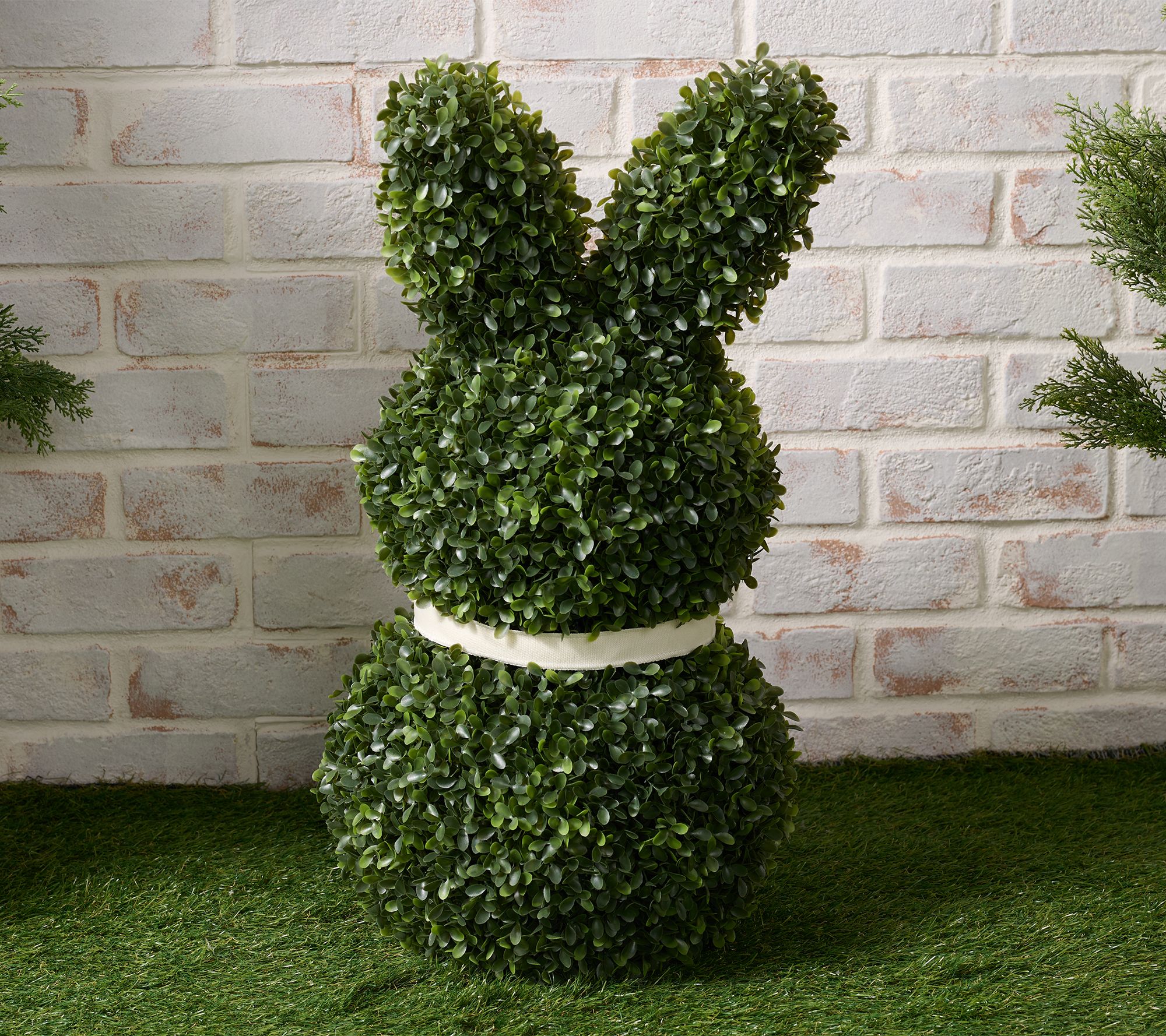 "As Is" Indoor/ Outddoor 24" Boxwood Bunny with Bow and Stakes Valerie