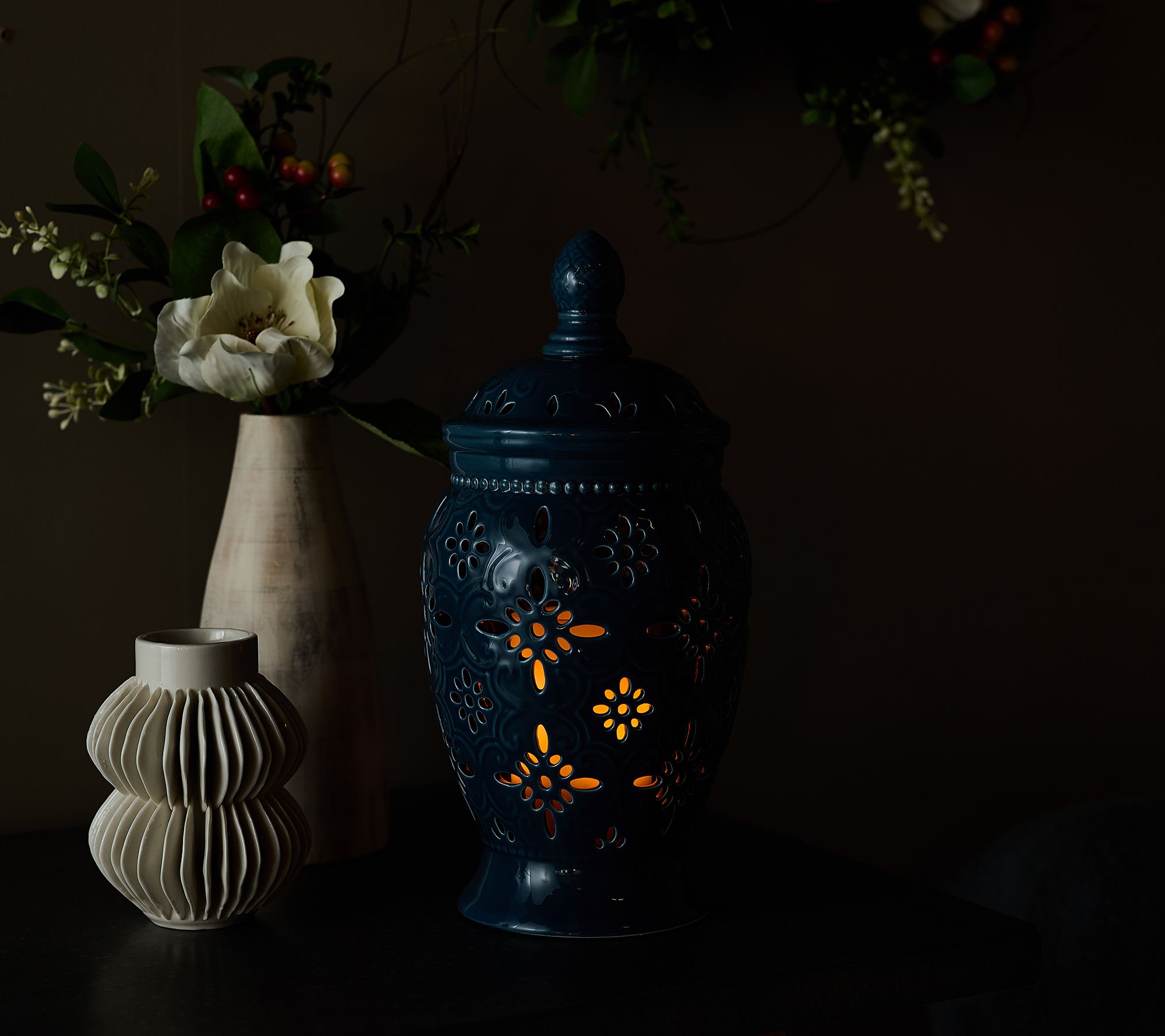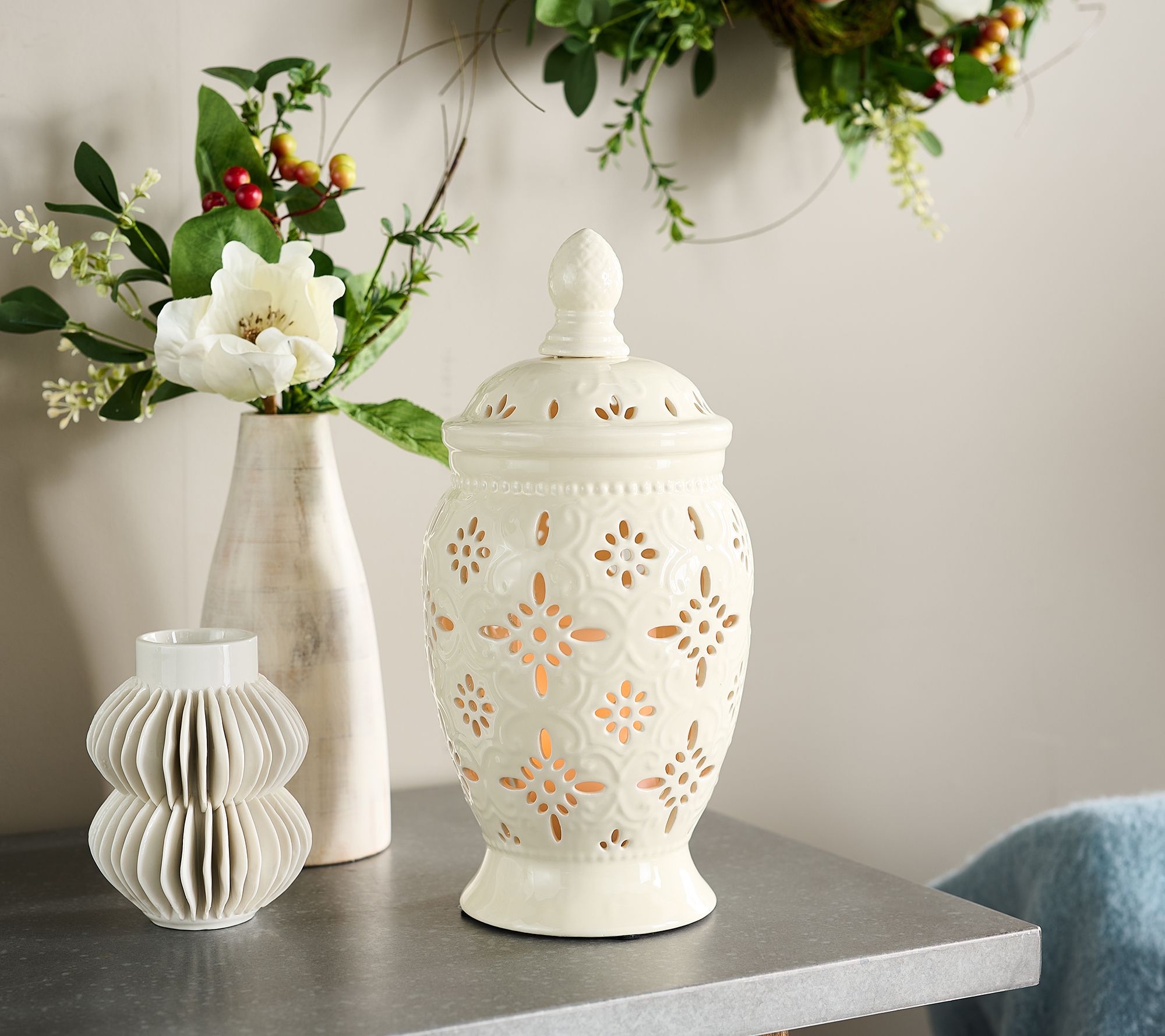Give your entry, end table, or book nook a cozy, flickering glow with this elegant illuminated ginger jar. From the Valerie Parr Hill Collection.