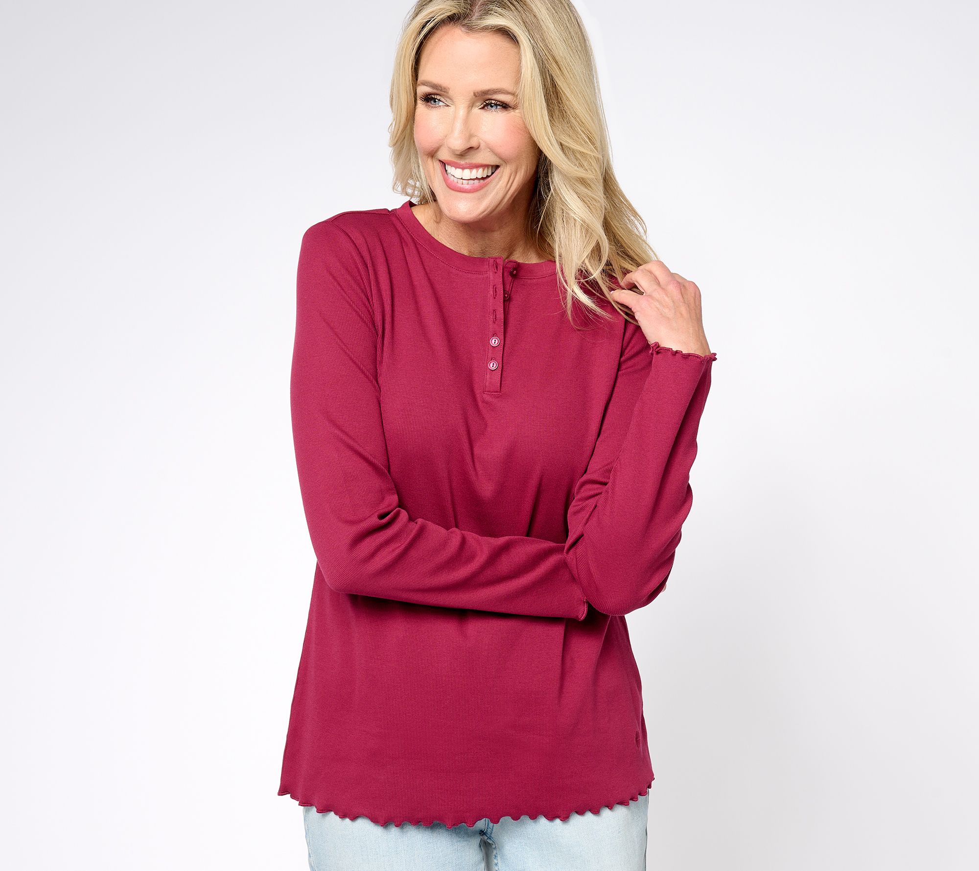 Are your fall favorites looking a little rough? Add some freshness to your wardrobe essentials with this cute ribbed henley top (in pima cotton for supreme softness!). From the Isaac Mizrahi Live!TM.