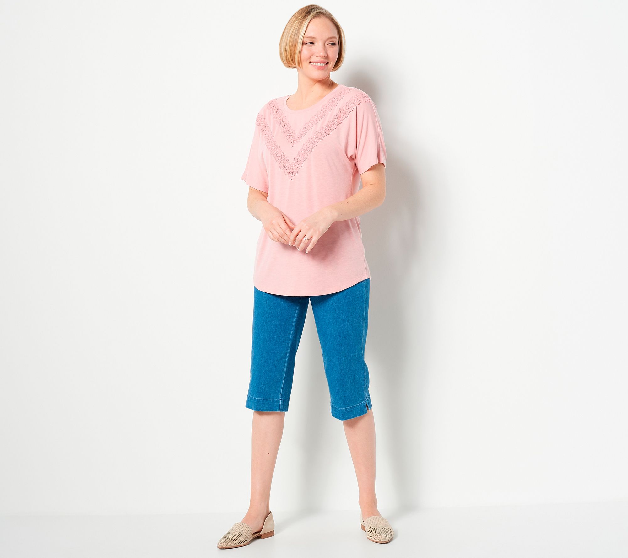 The lace trim detailing on this top gives it that subtle flare to elevate it from a casual shirt to an OOTD finisher. From Isaac Mizrahi Live!TM.