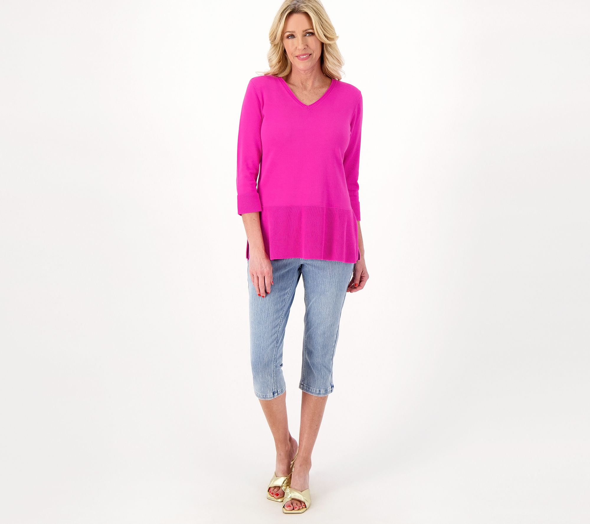 "As Is" Isaac Mizrahi Live! 3/4-Sleeve Ribbed Peplum Sweater
