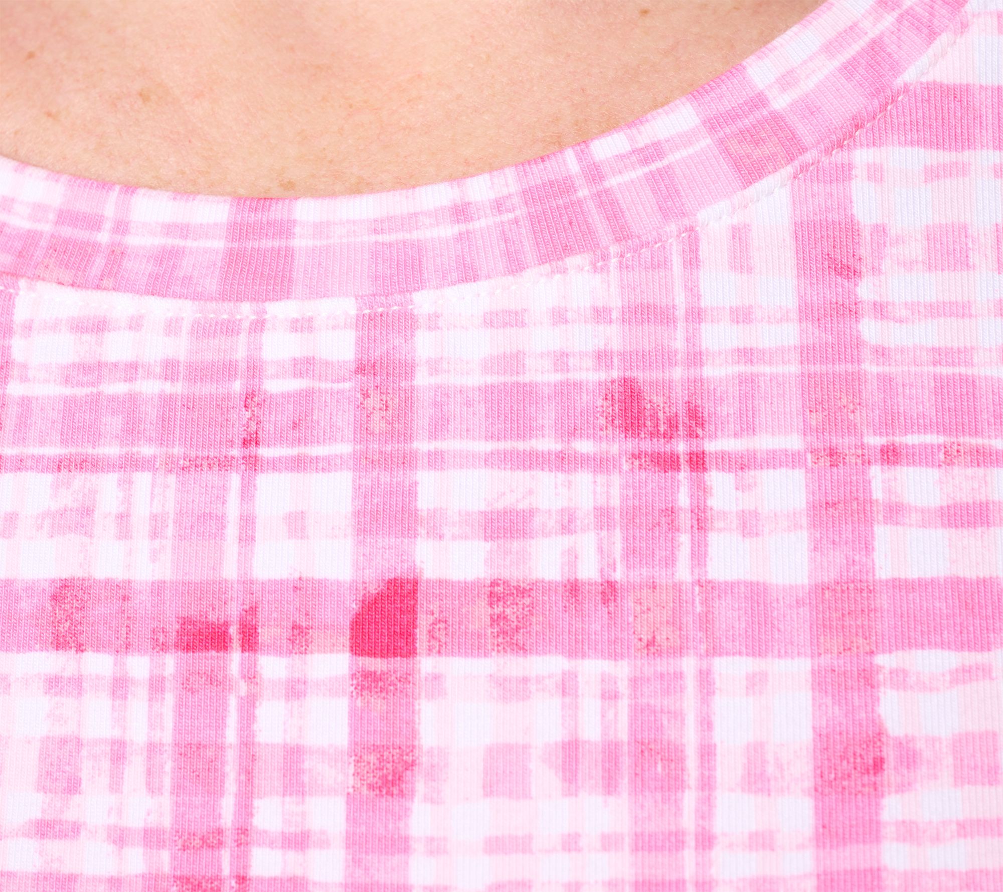 • Features: allover print, short sleeves, crew neckline, straight bottom hem