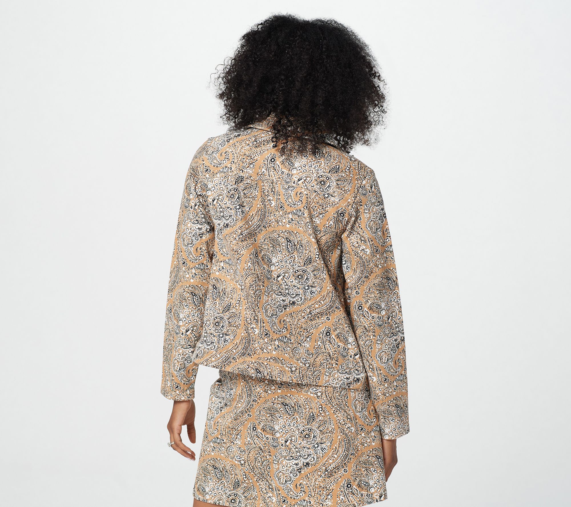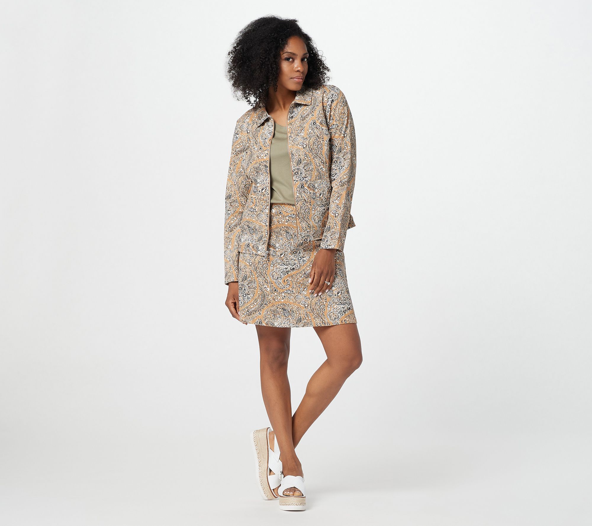 "As Is" Isaac Mizrahi Live! Always Isaac Printed Knit Denim Jacket