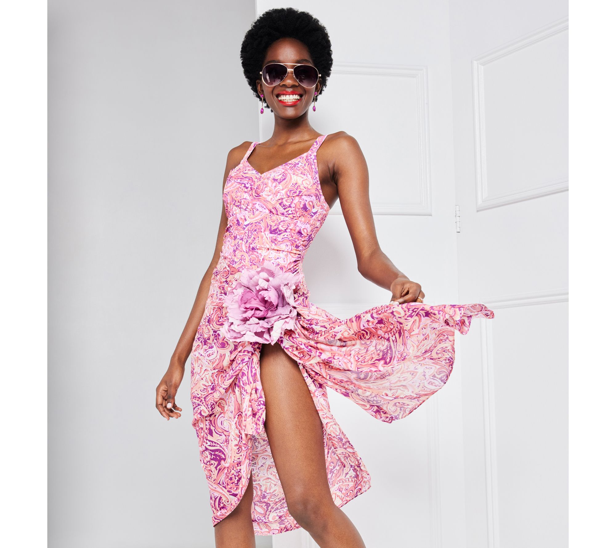 Rule the pool and be grand in the sand when you're wearing this one-piece swimsuit. Adjustable back straps help hold everything in place while keeping you comfy with a custom fit. From Isaac Mizrahi Live!TM.