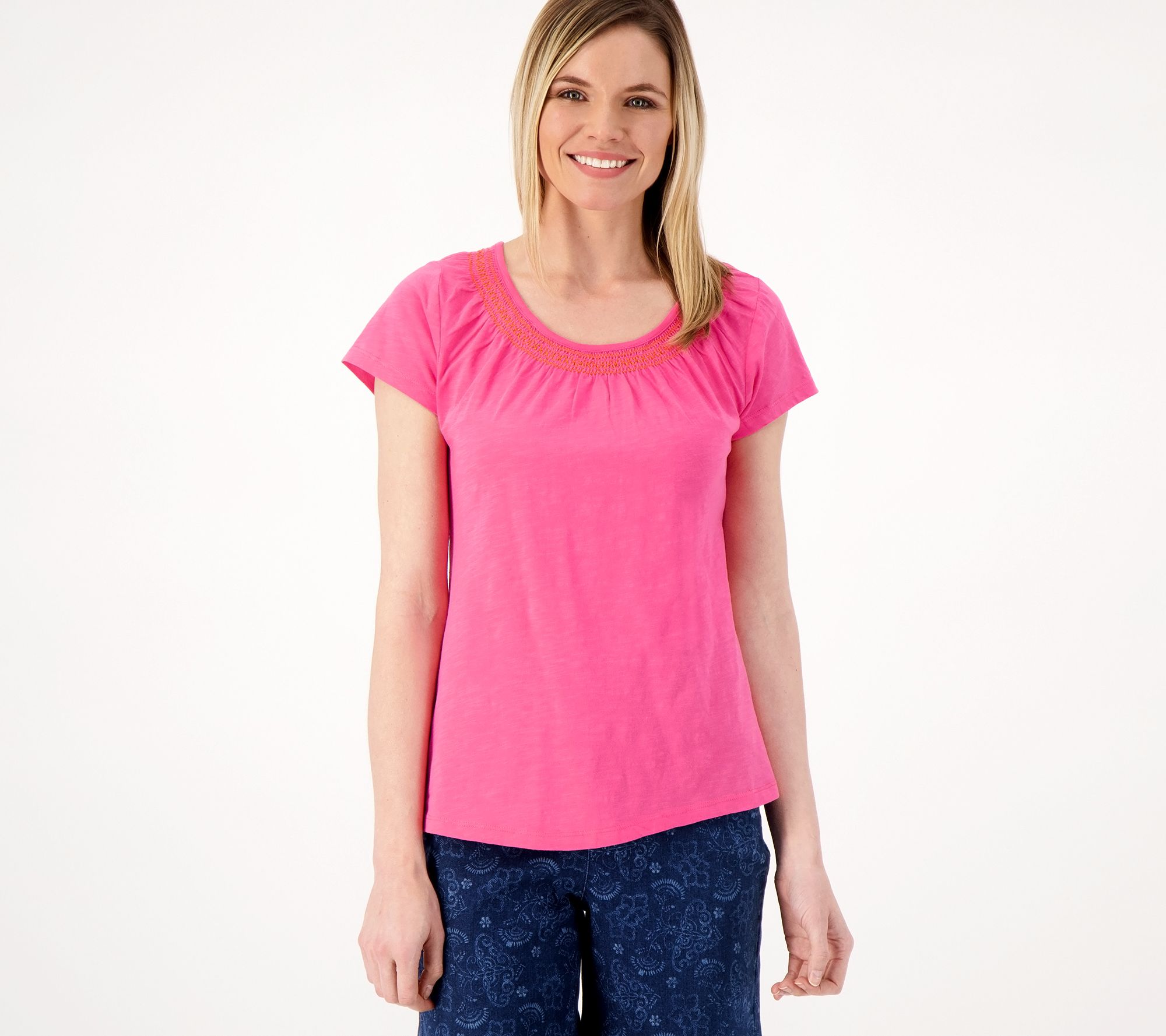 Ladylike touches -- like cap sleeves and a contrasting embroidery detail -- make this top a timeless option you'll reach for again and again. From Isaac Mizrahi Live!TM.