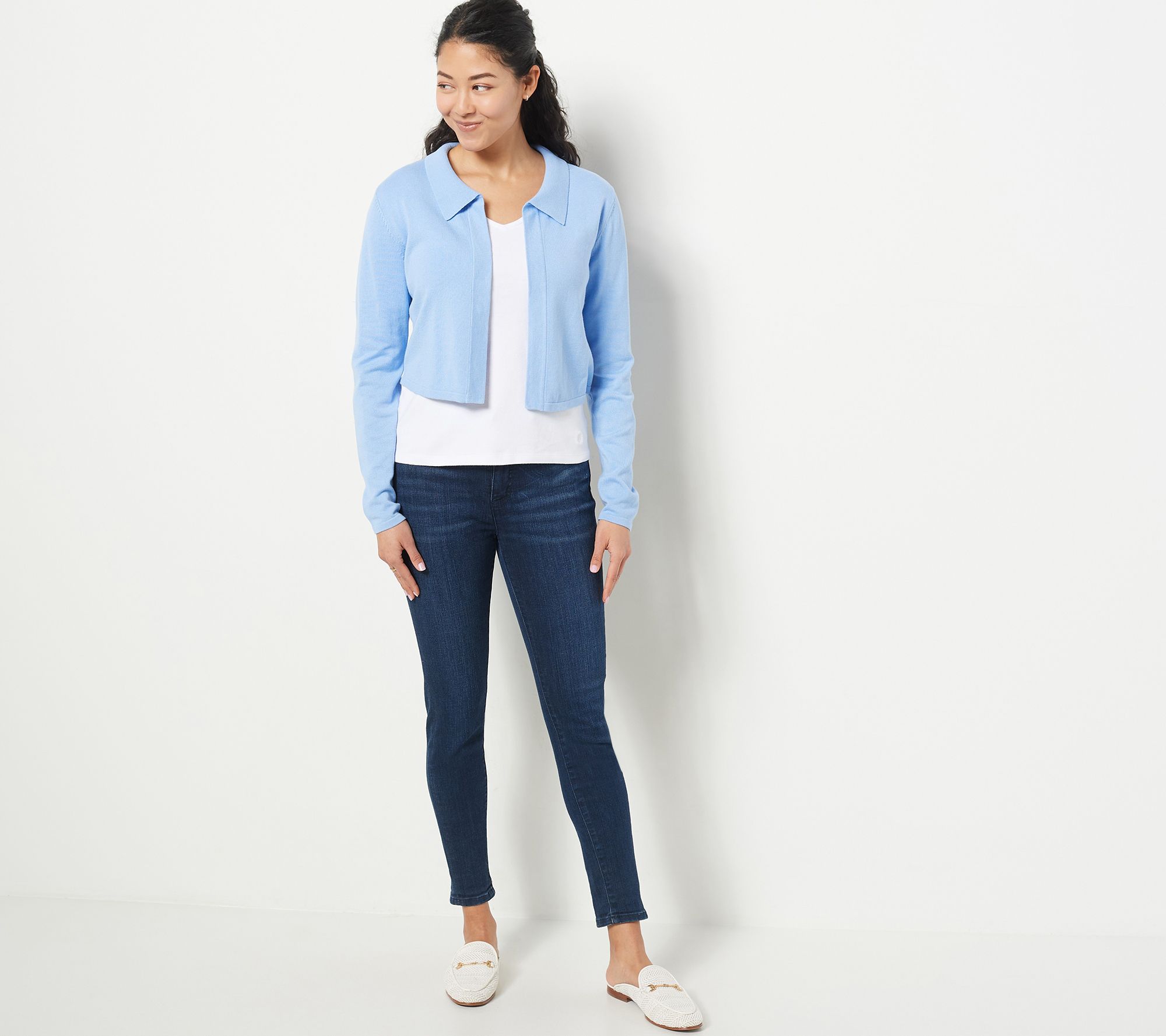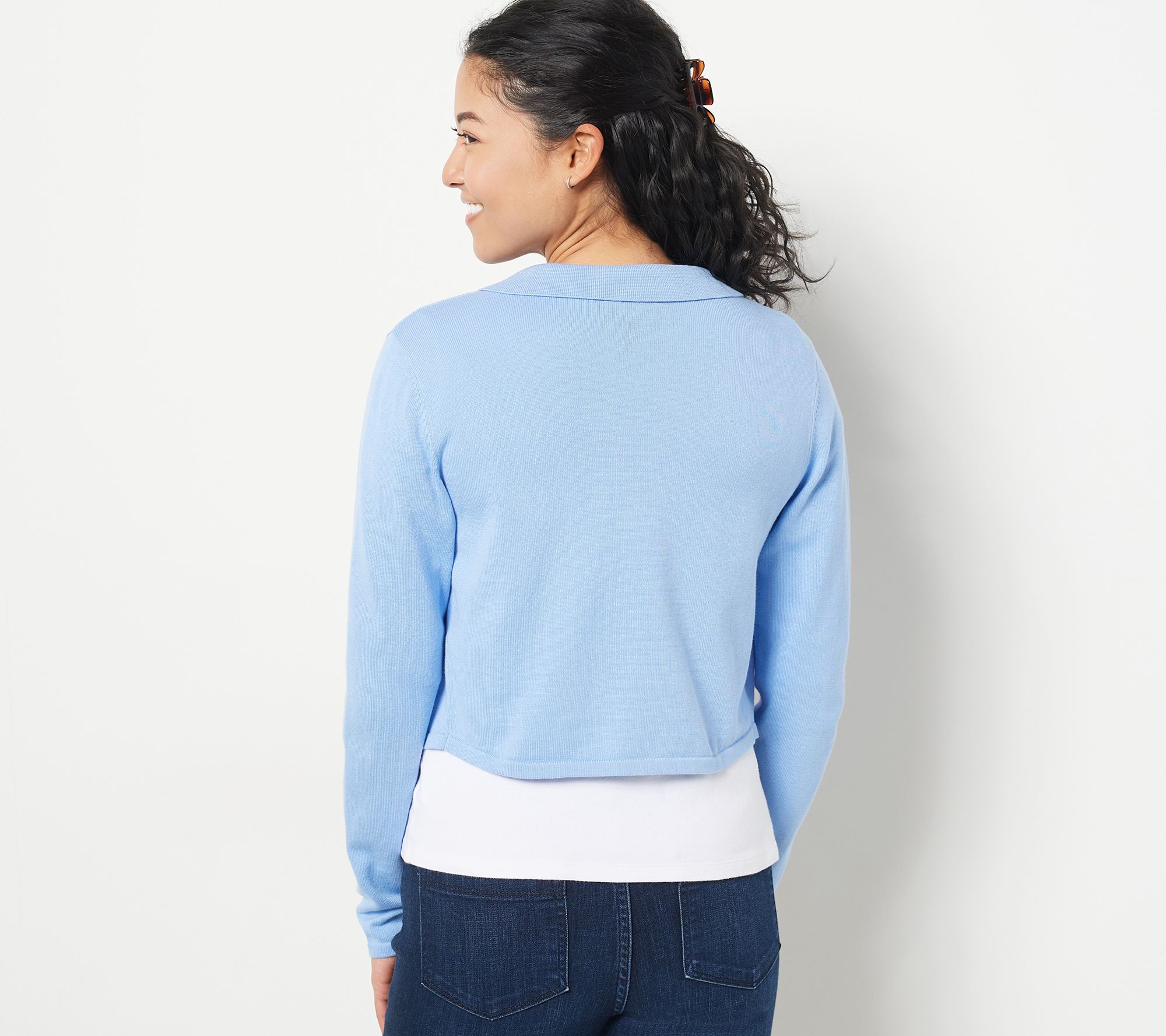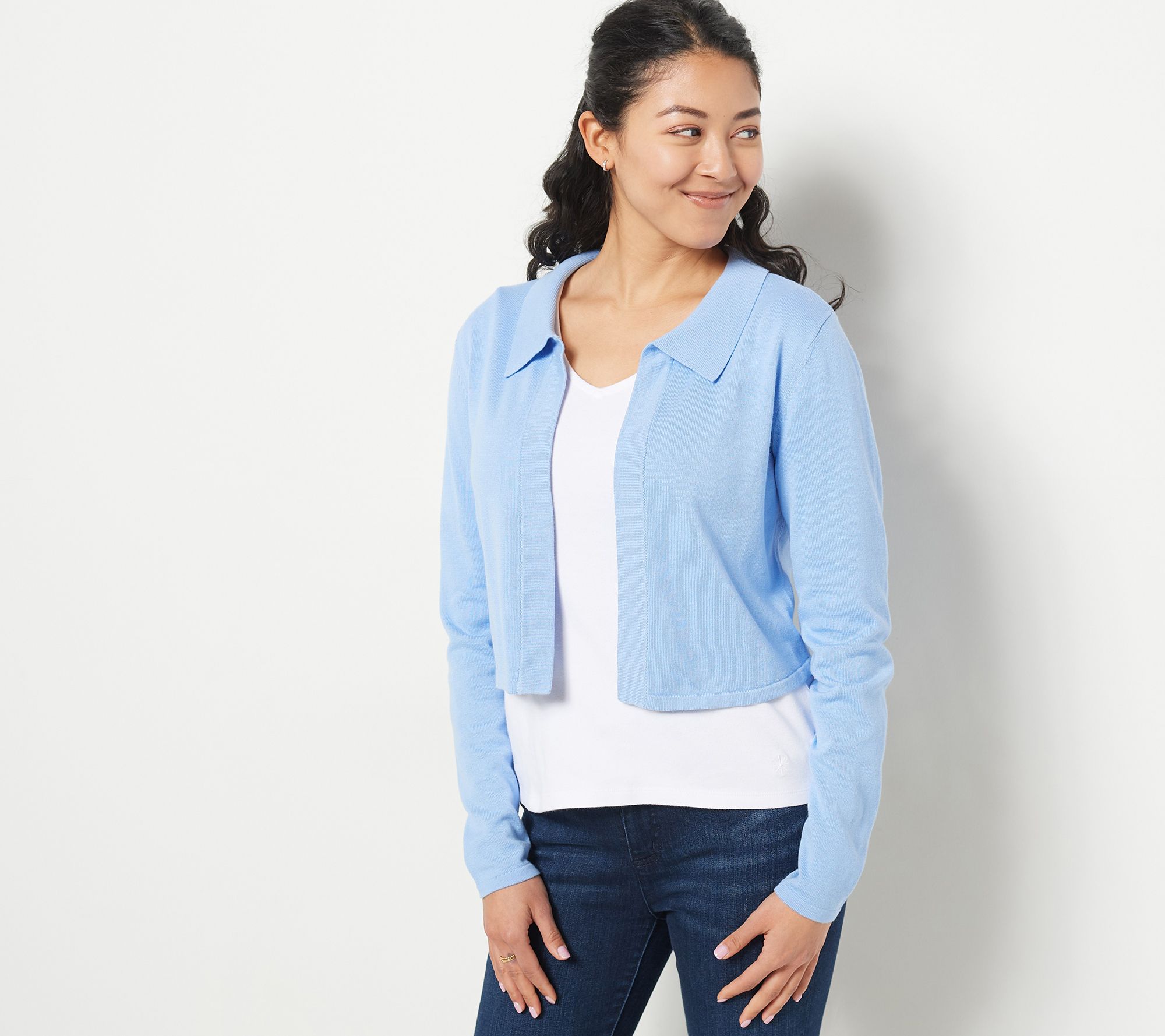 Blooming flowers and chirping birds does mean warmer weather is on its way, but those chilly springtime days are something to be prepared for. This collared cardigan is the perfect defense. From Isaac Mizrahi Live!TM.