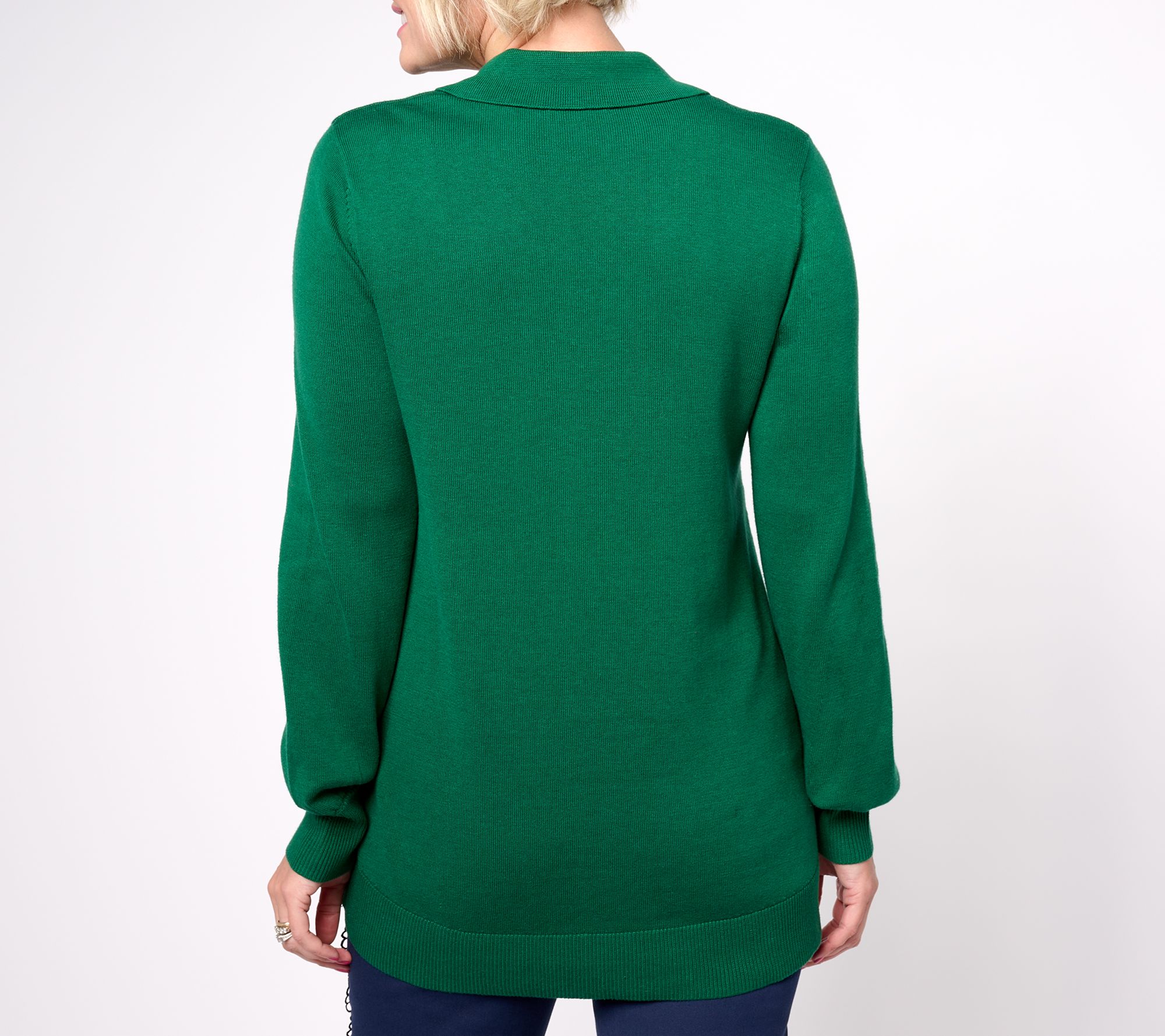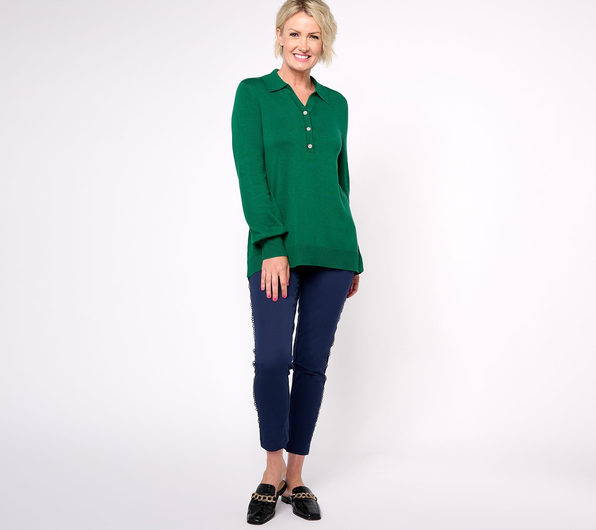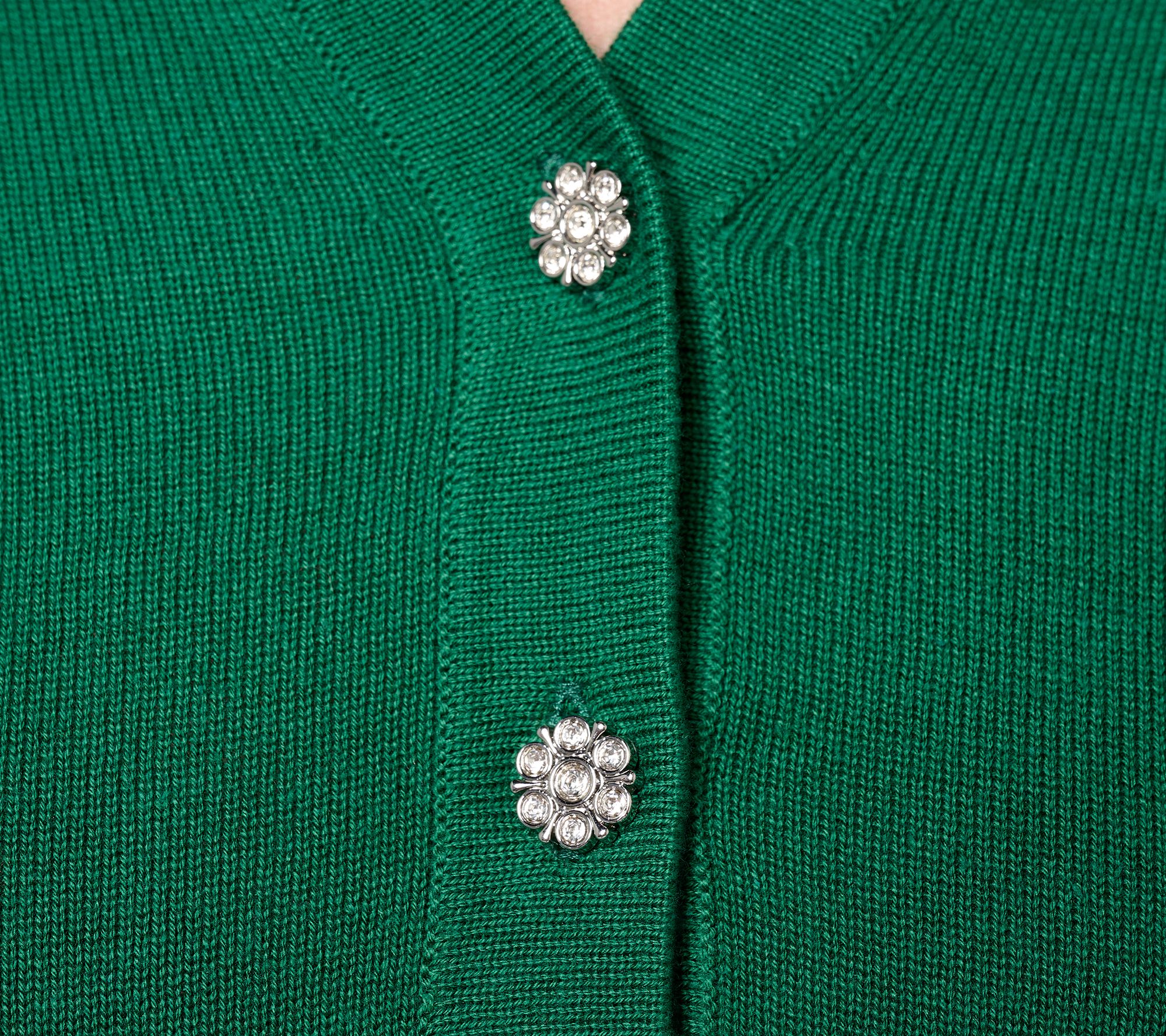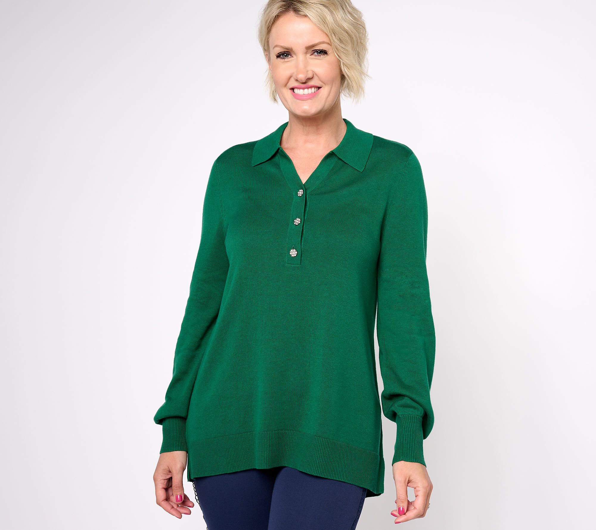 This collared sweater is a lovely choice for a variety of occasions. Jewel buttons and ribbed details provide something special. From Isaac Mizrahi Live!TM.