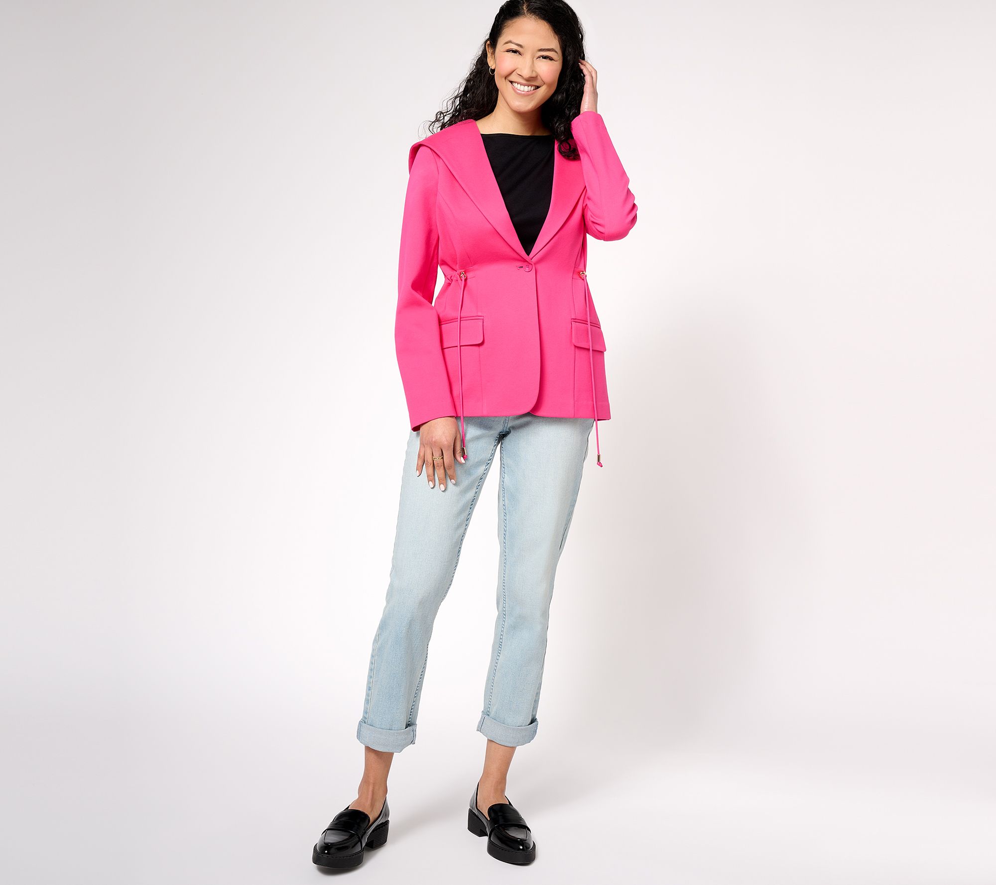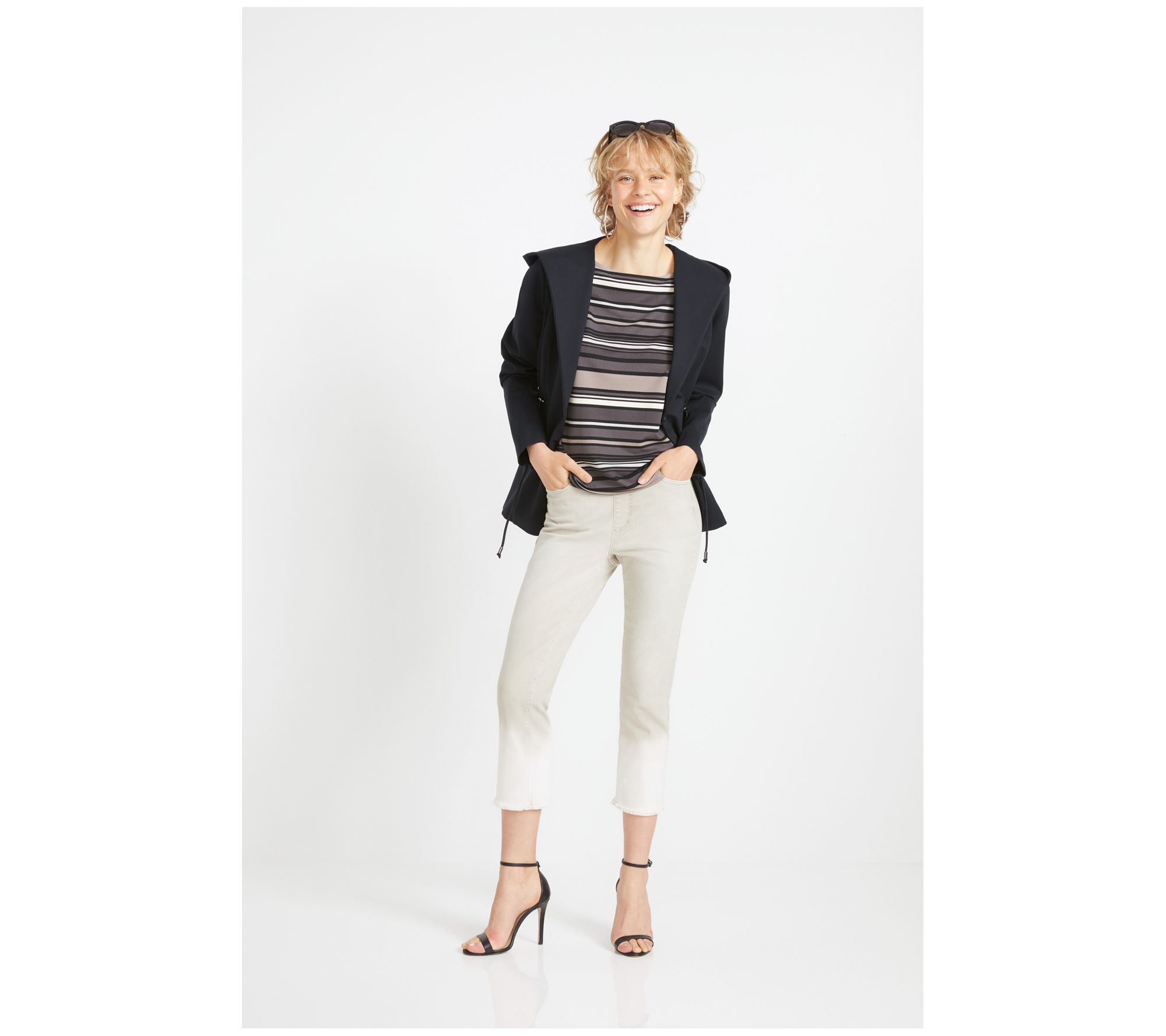 Who's behind this hoodie/anorak/blazer collab? Isaac, of course! He's ingeniously used his mad designer mixology skills to create a knit jacket that's softly suited and endlessly versatile. Pair it with pressed trousers, your fave denim, or even joggers and wear it to the office, for weekend errands, or as outerwear. Sooo many options! From Isaac Mizrahi Live!TM.
