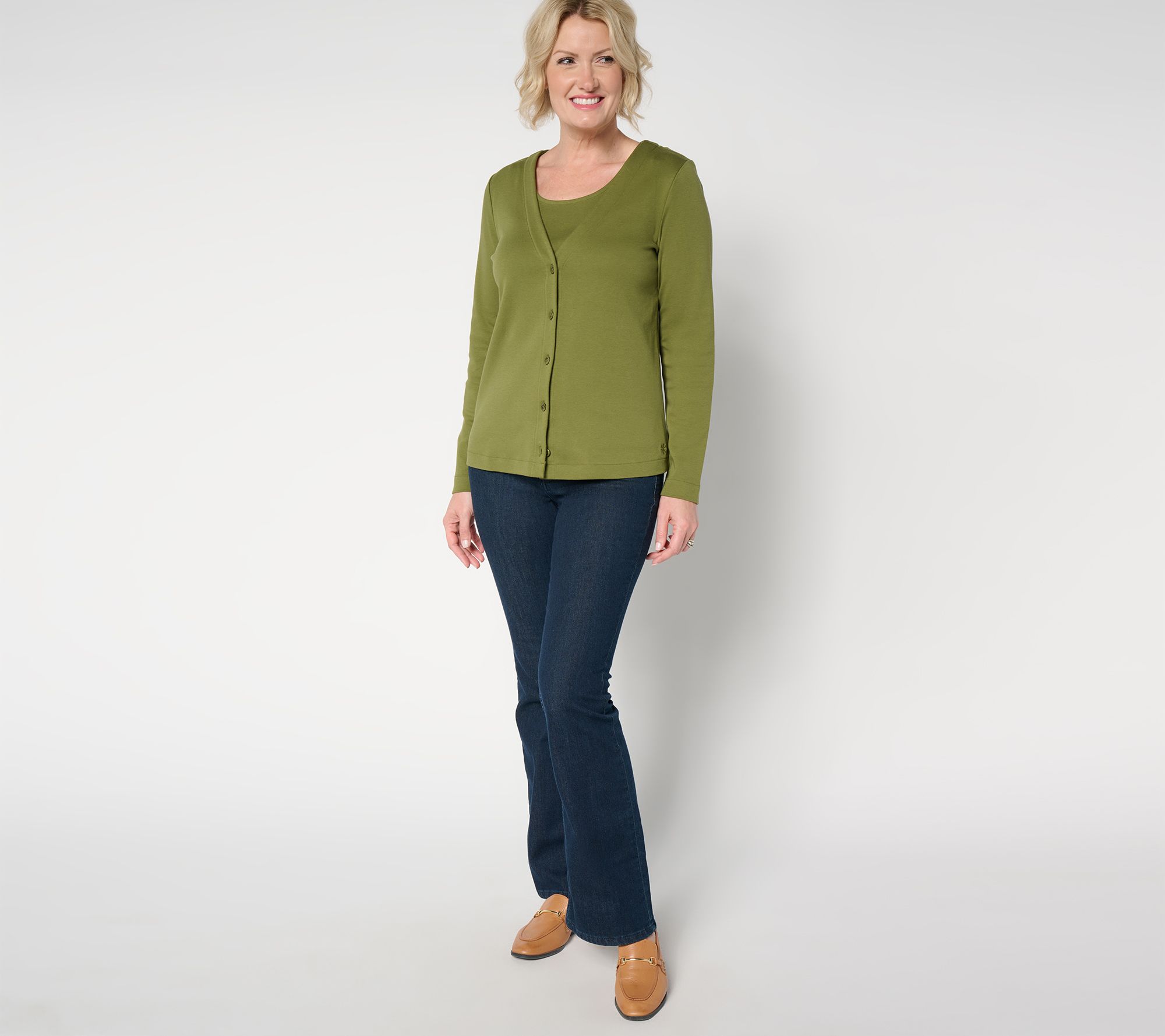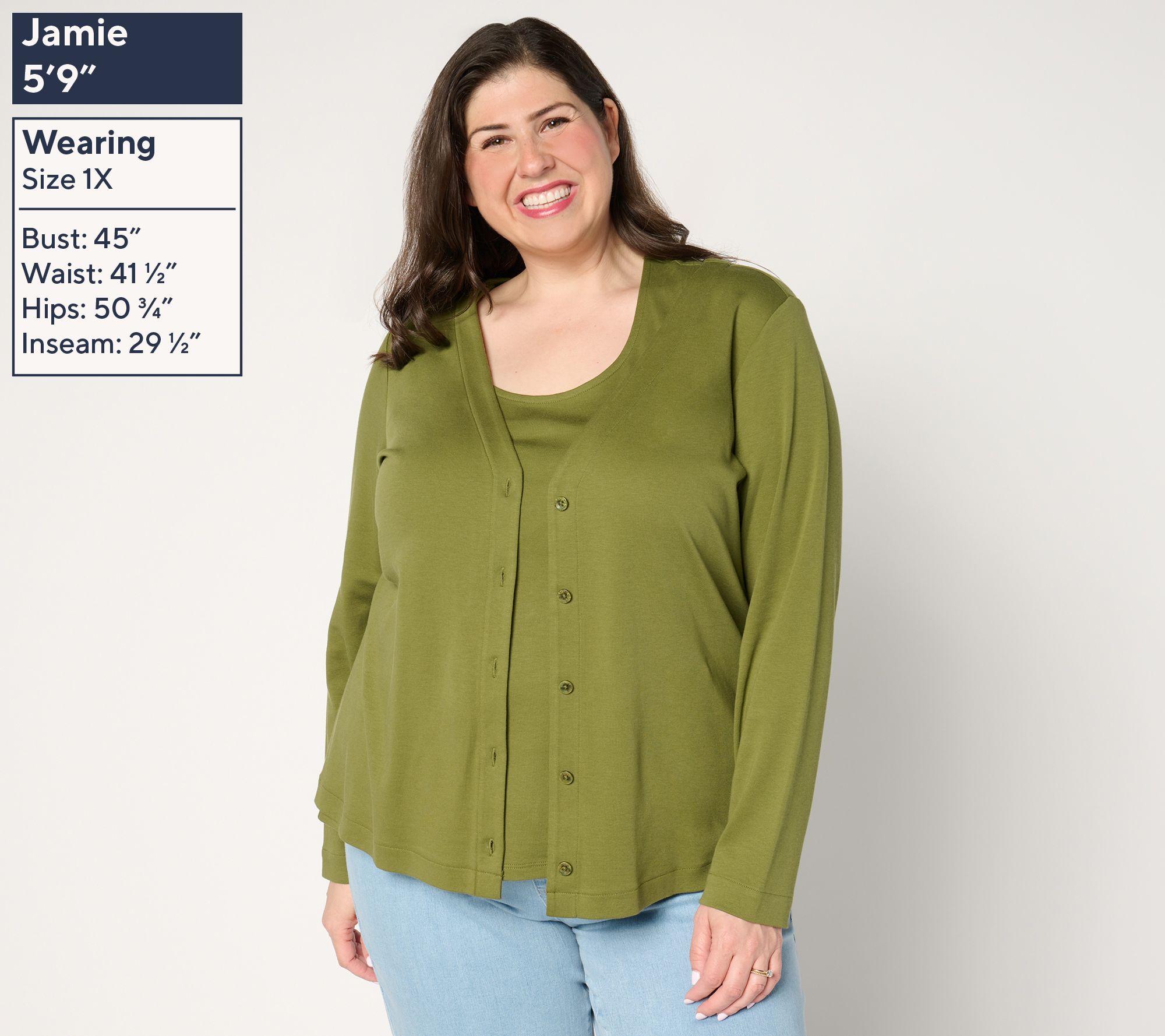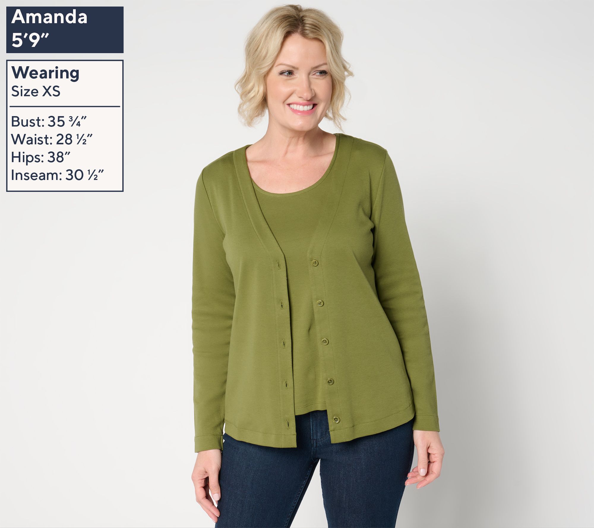 "As Is" Isaac Mizrahi Live! Essentials Cotton Cardigan and Tank Set