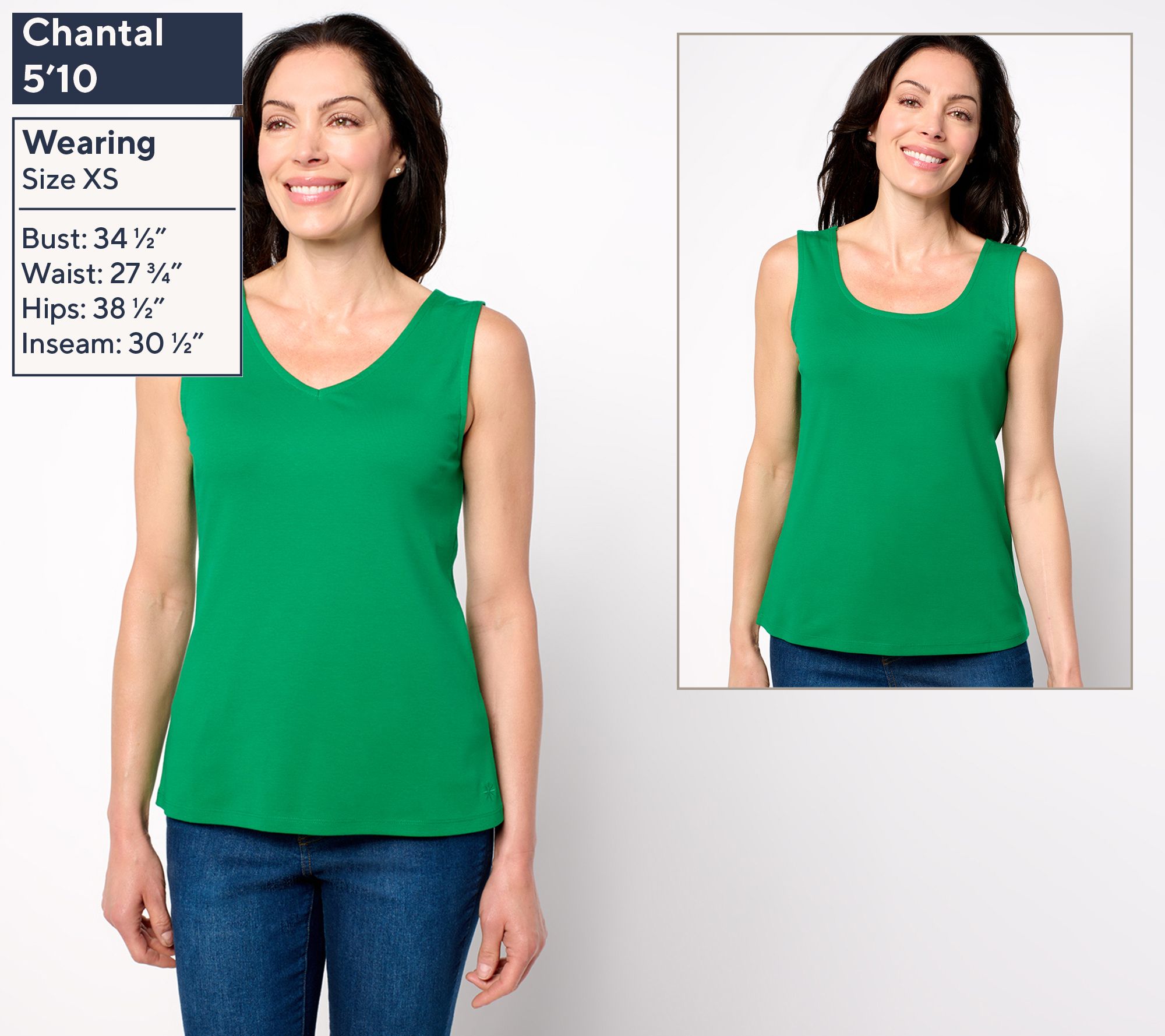 Looking for versatility in your wardrobe? This Essentials collection top offers just that with its reversible neckline design and micro rib Pima cotton fabrication that's comfy for every activity under the sun. From Isaac Mizrahi Live!TM.