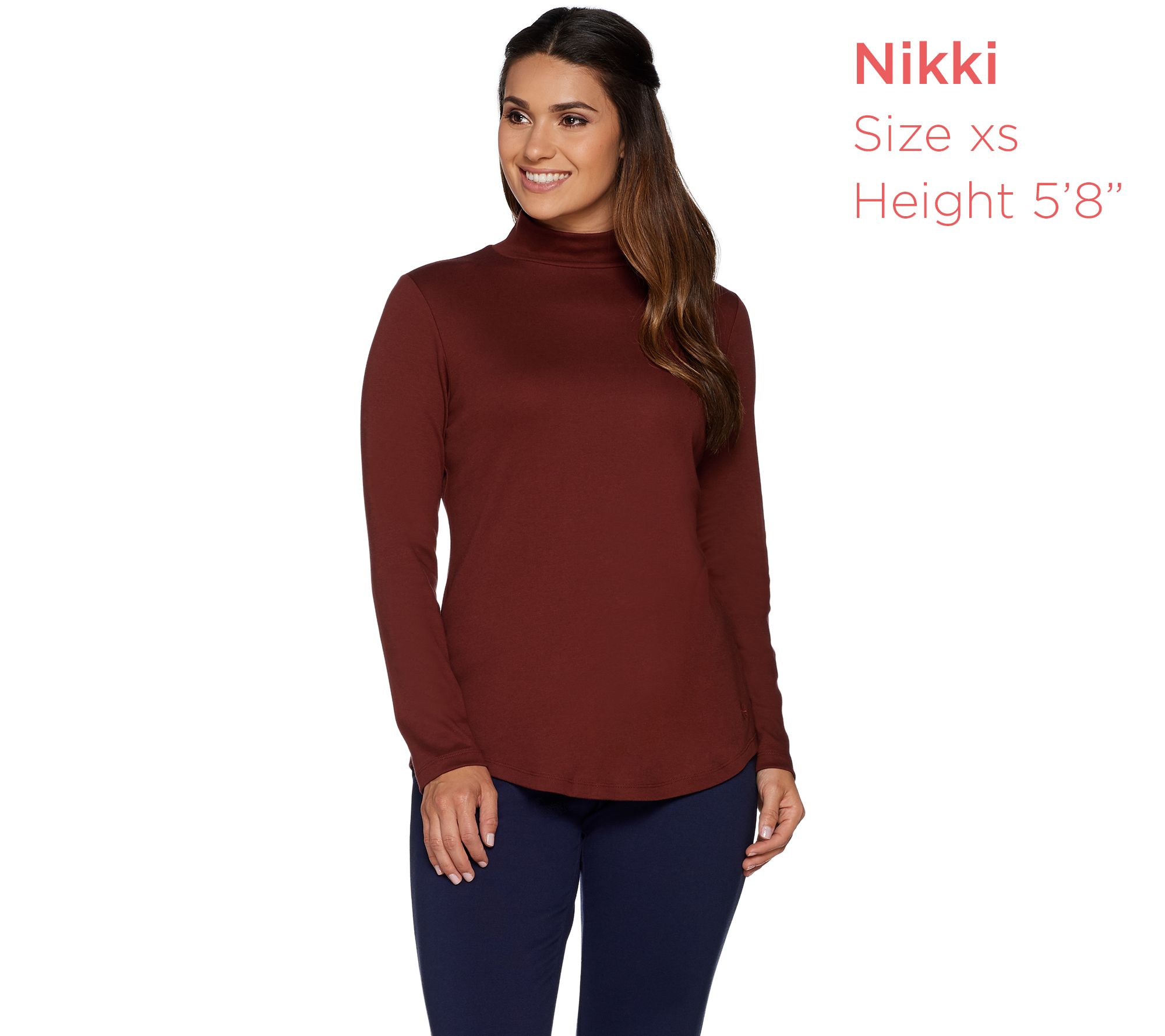 • Features: mock turtle neck, long sleeves, curved hem with side slits