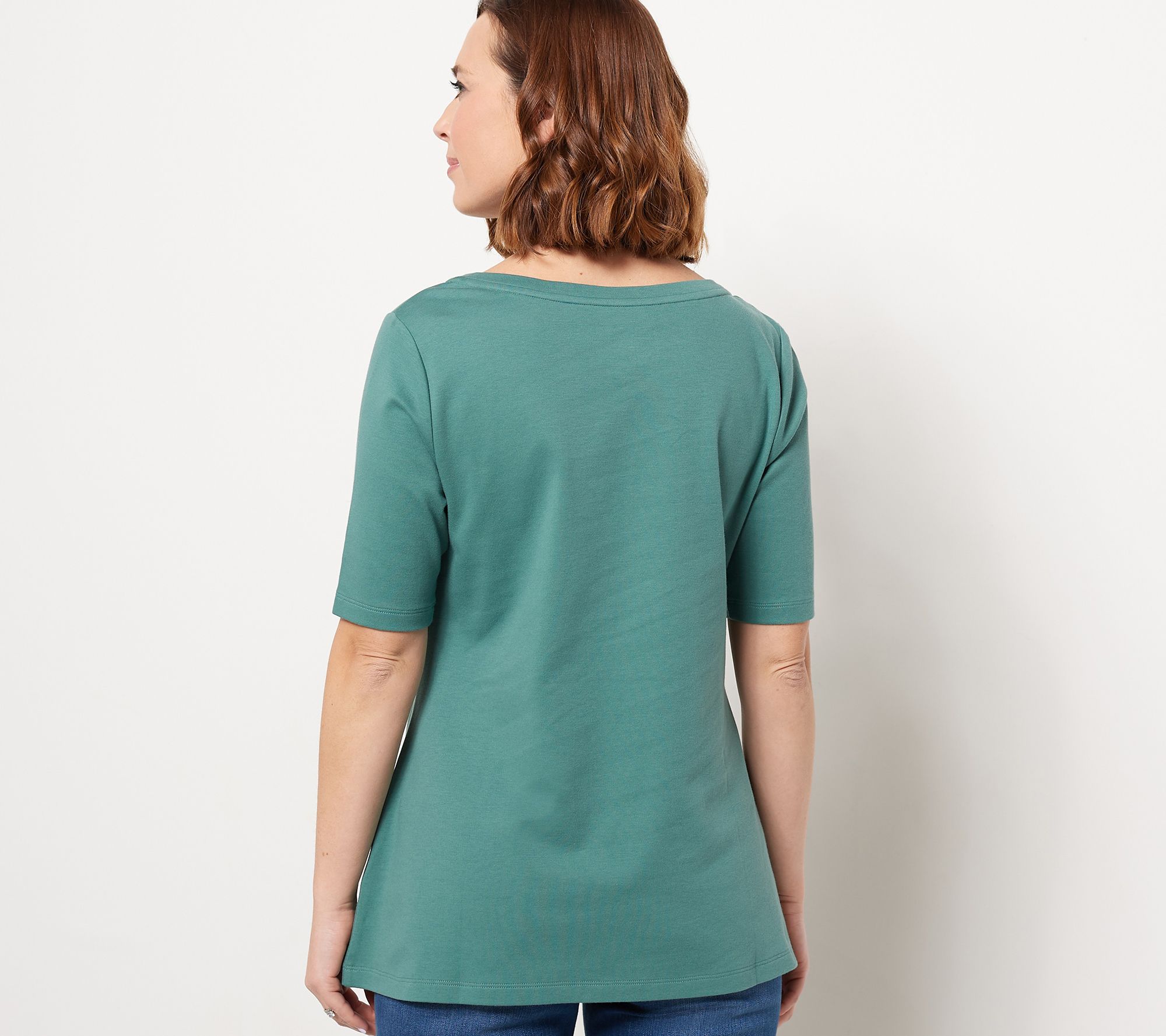 "As Is" Isaac Mizrahi Live! Essentials Pima Cotton Boat Neck Swing Top