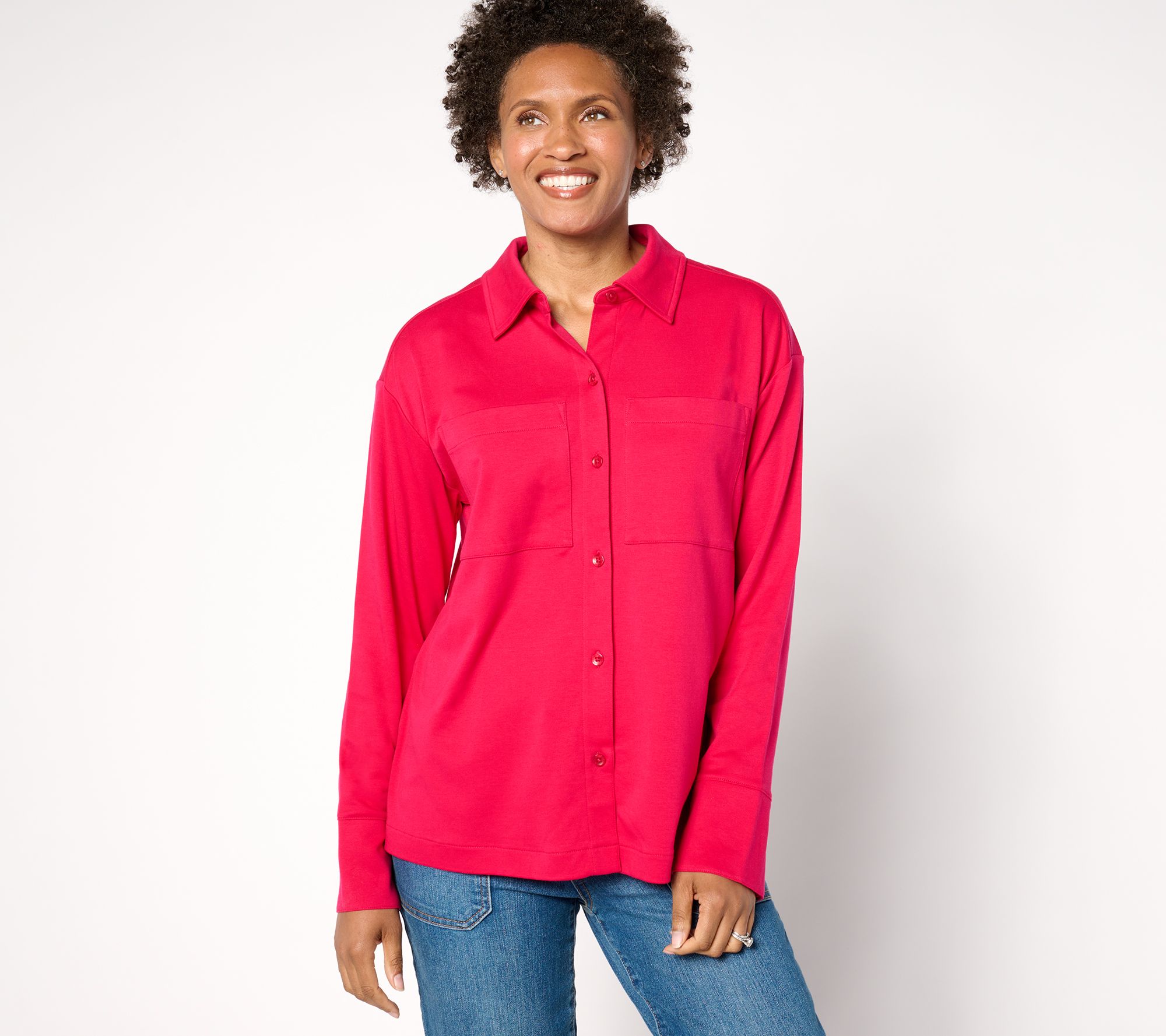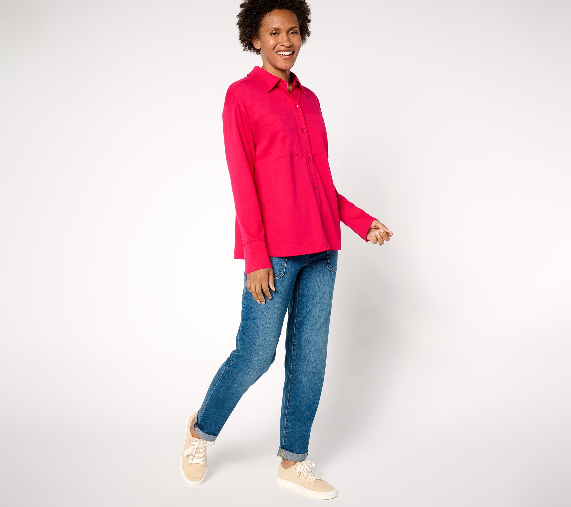 "As Is" Isaac Mizrahi Live! Essentials Pima Cotton Button Front Shirt