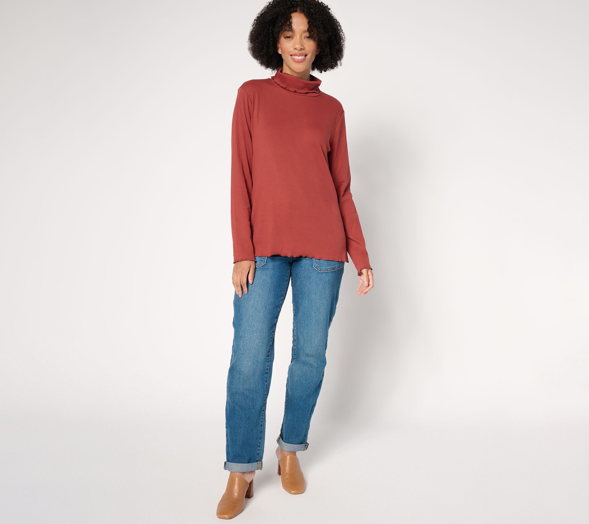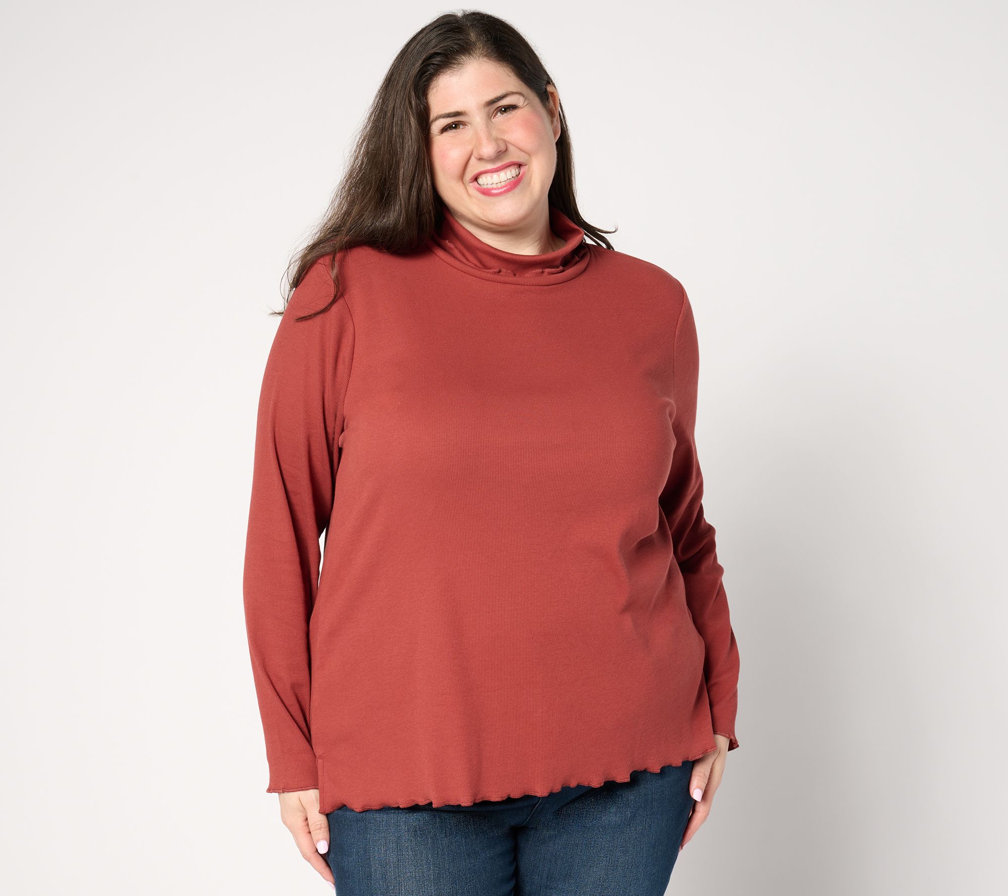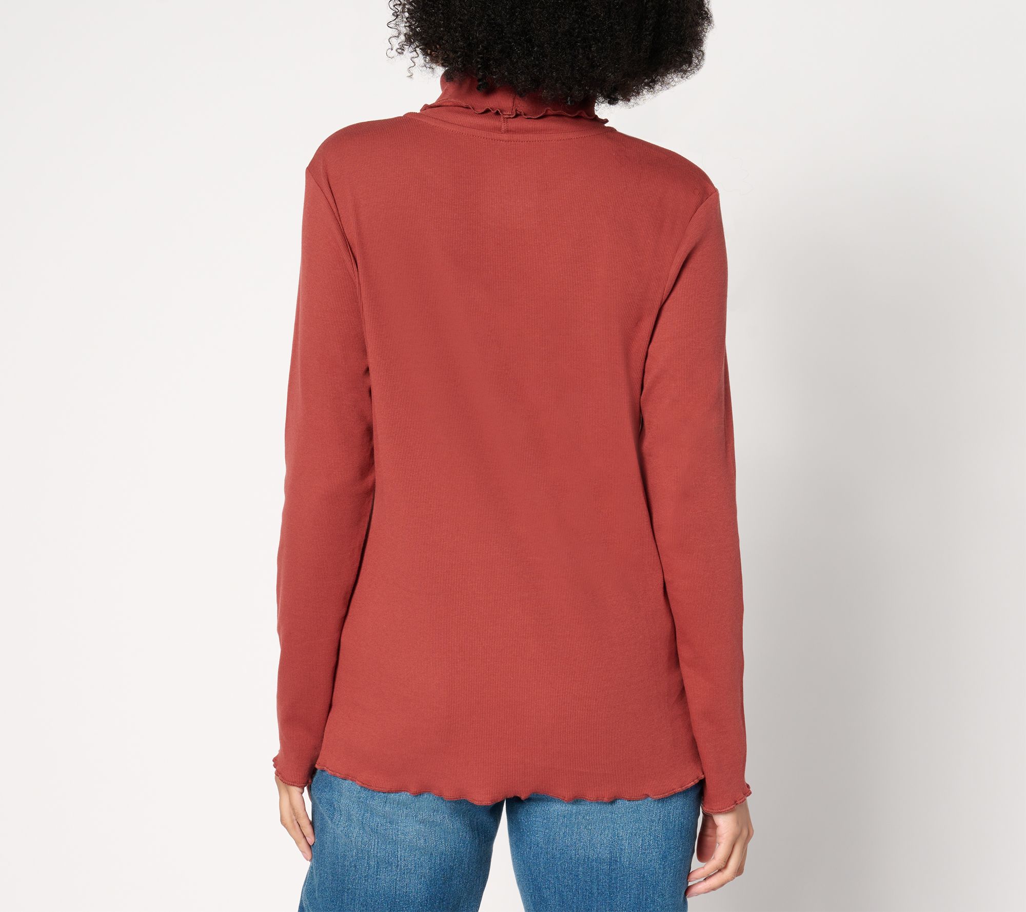 Gentle ribbing and lettuce edges give this Pima cotton turtleneck a playful, casual feel. From Isaac Mizrahi Live!TM.
