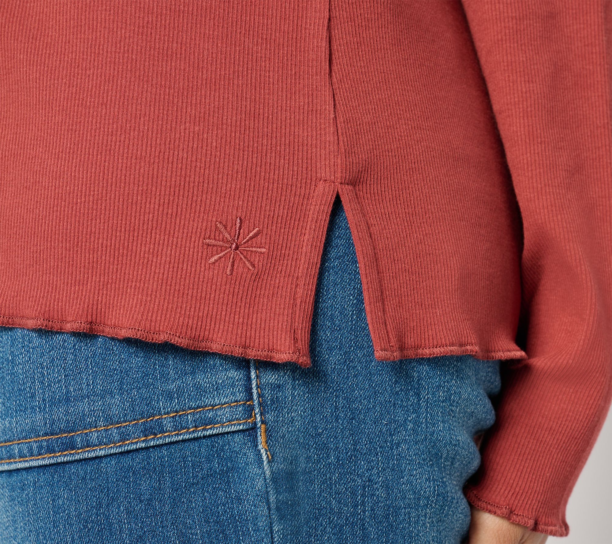 "As Is" Isaac Mizrahi Live! Essentials Pima Rib Lettuce Hem Turtleneck