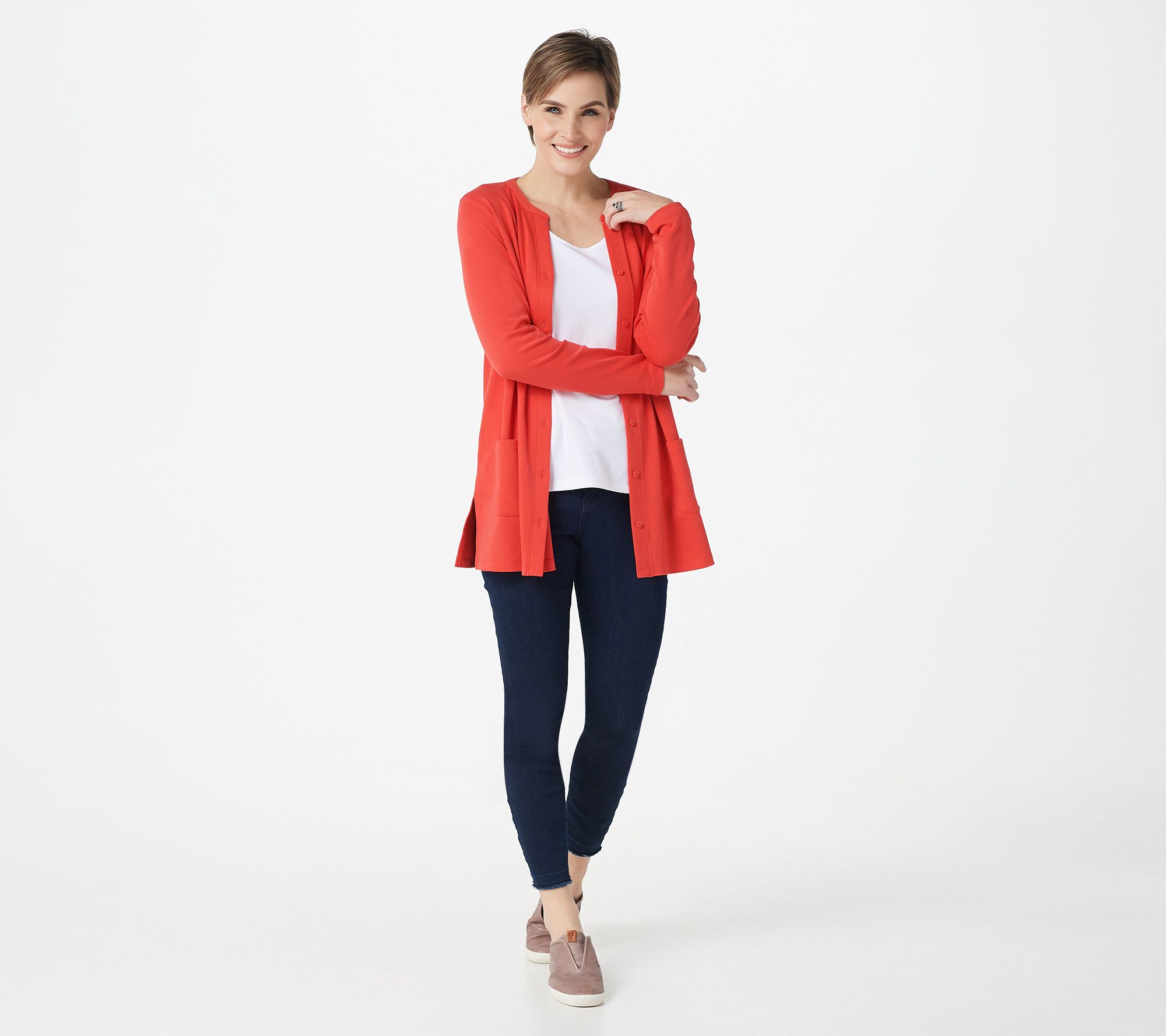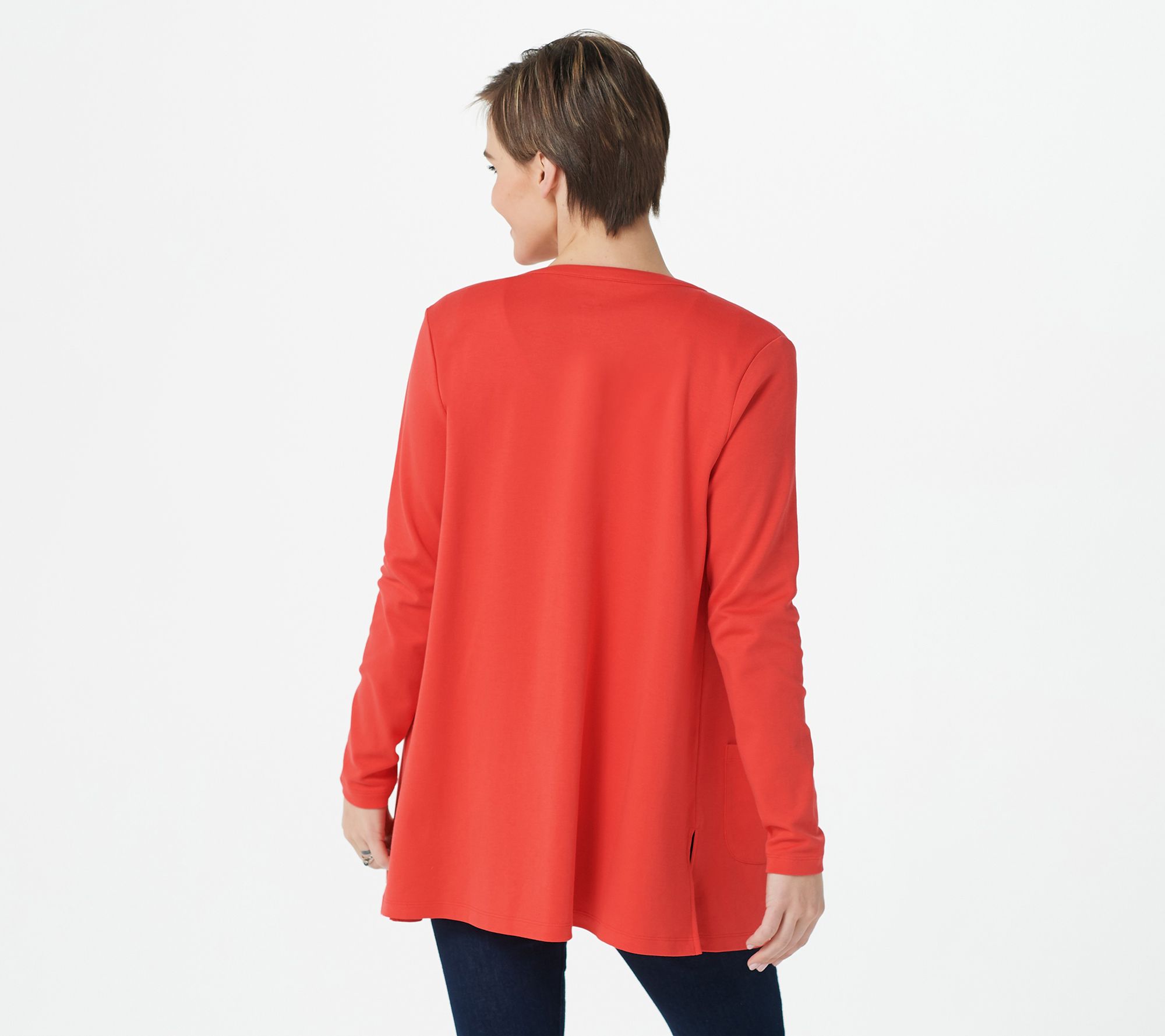 "As Is" Isaac Mizrahi Live! Essentials Pima Y-Neck Button Front Topper