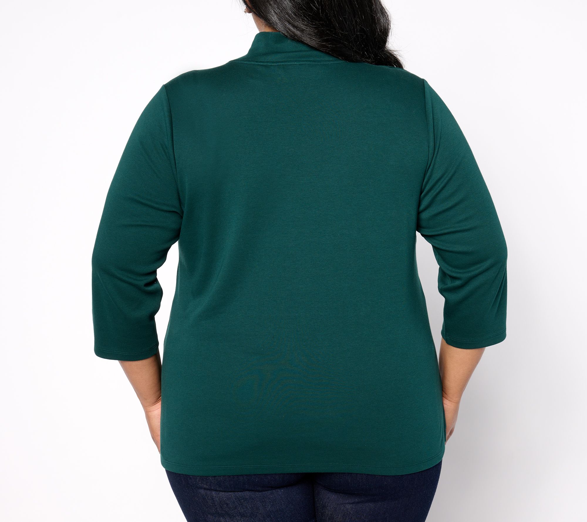 "As Is" Isaac Mizrahi Live! Estate Mock Neck 3/4 Sleeve Top w/ Buttons