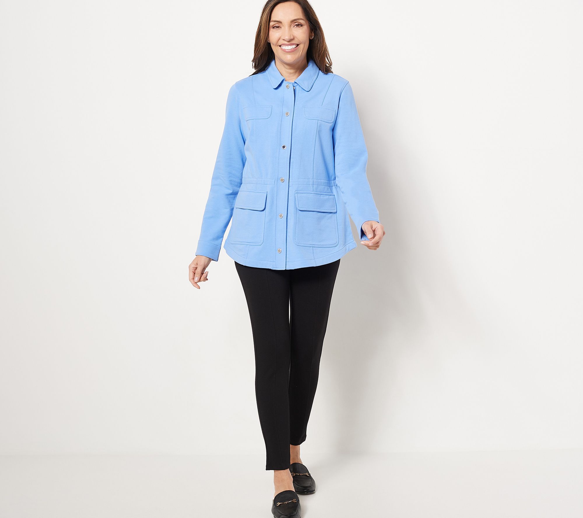 This French terry jacket was made for those perfect weather days. You know -- when there's a light breeze, the sun is peeking through the clouds, and the flowers have just started to bloom! Grab this stylish jacket and get out into nature (just make sure you snap a few pics of yourself looking so fab!). From Isaac Mizrahi Live!TM.