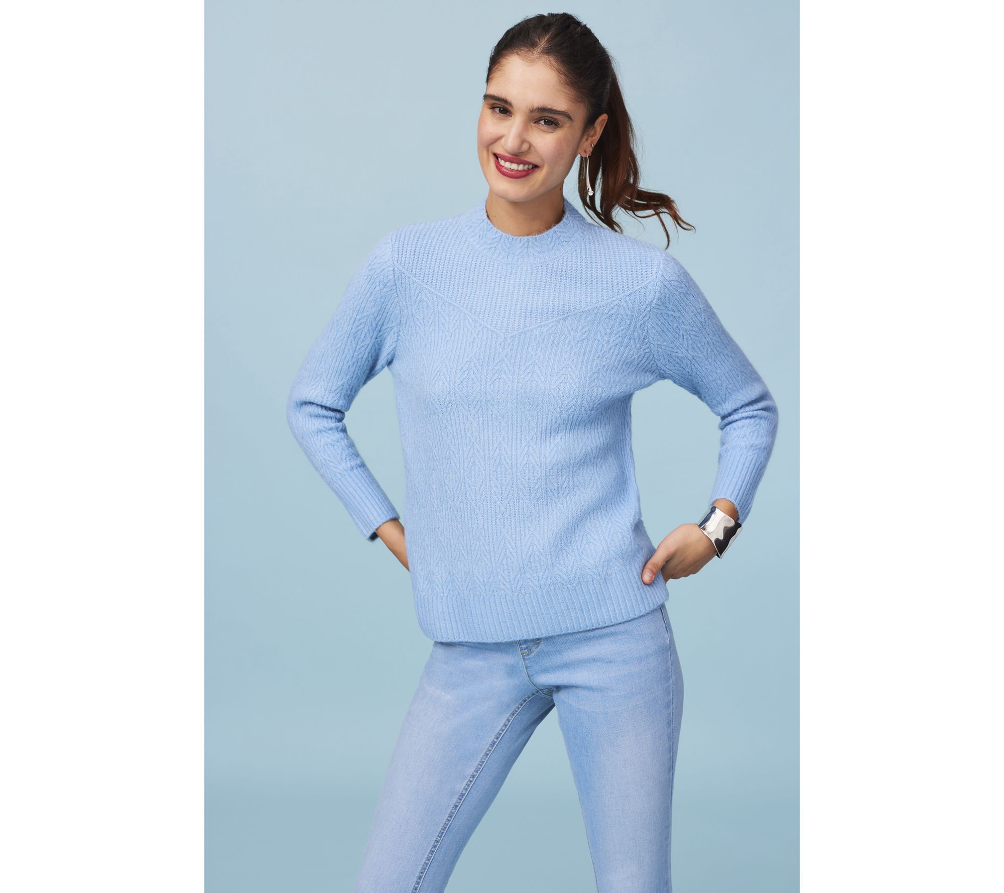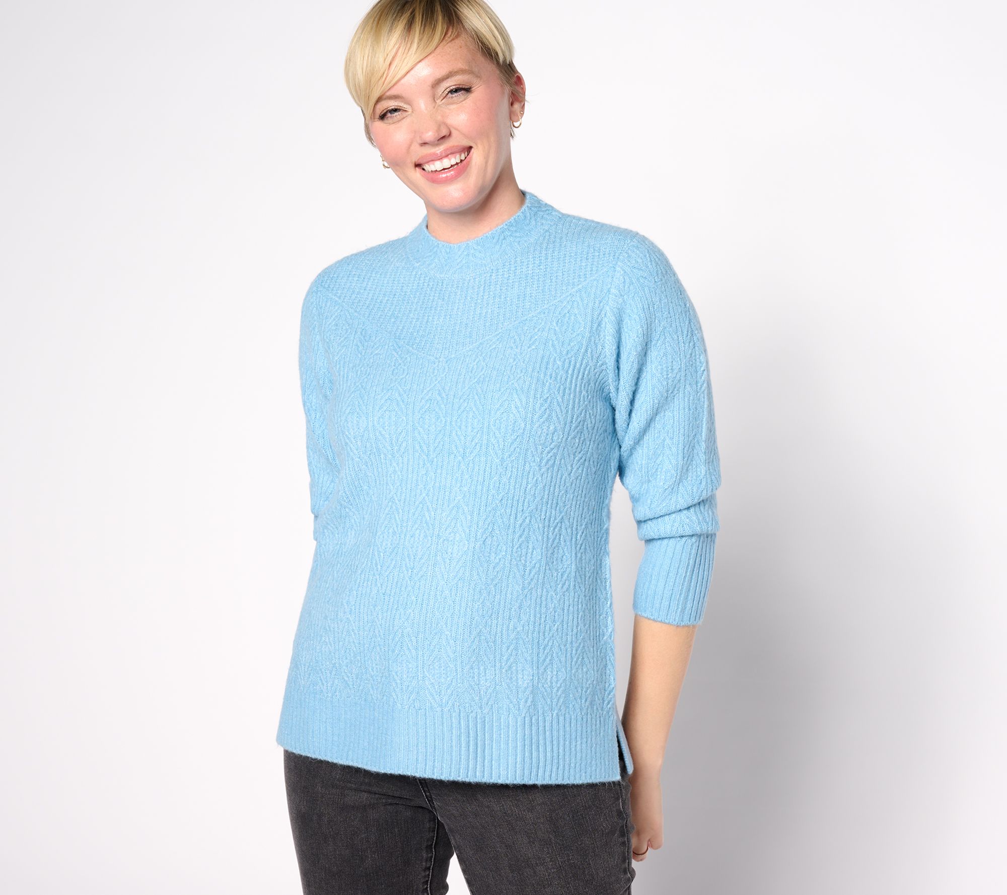 "As Is" Isaac Mizrahi Live! High Crew Neck Pullover Cable Sweater