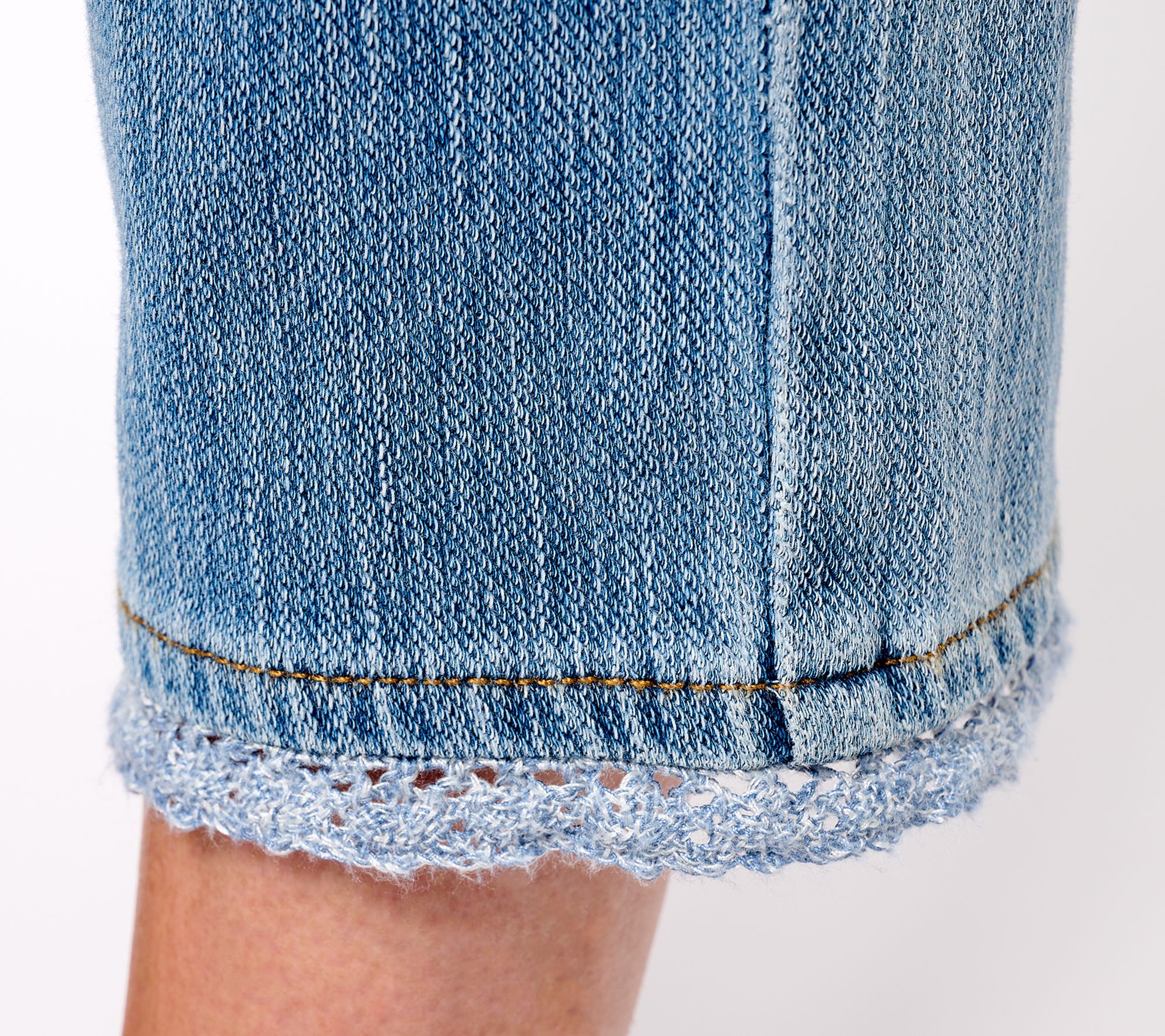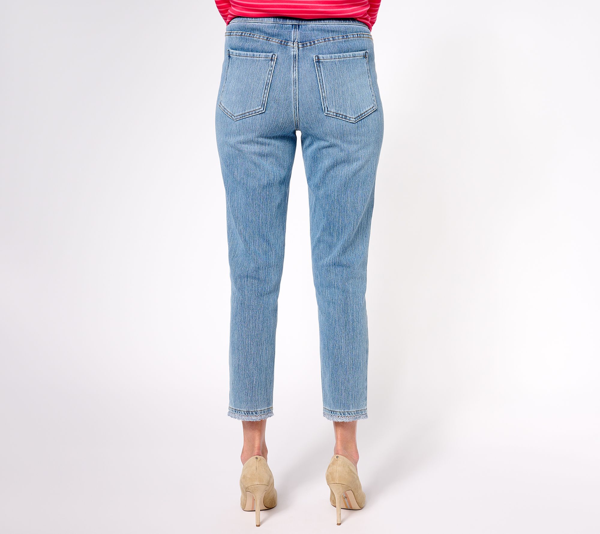 A little bit of trim on the hem gives these pull-on crop jeans a playful finish. From Isaac Mizrahi Live!TM