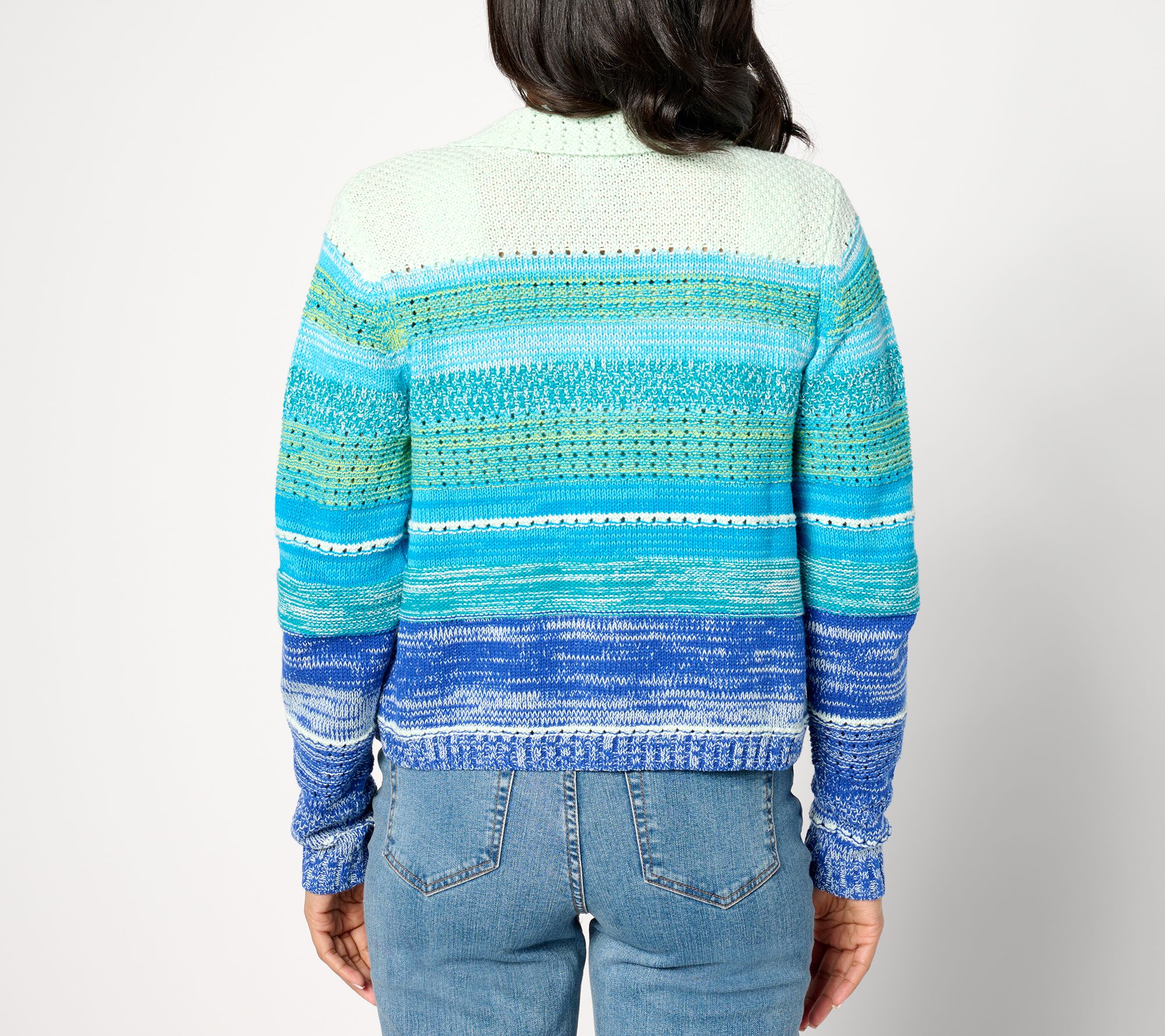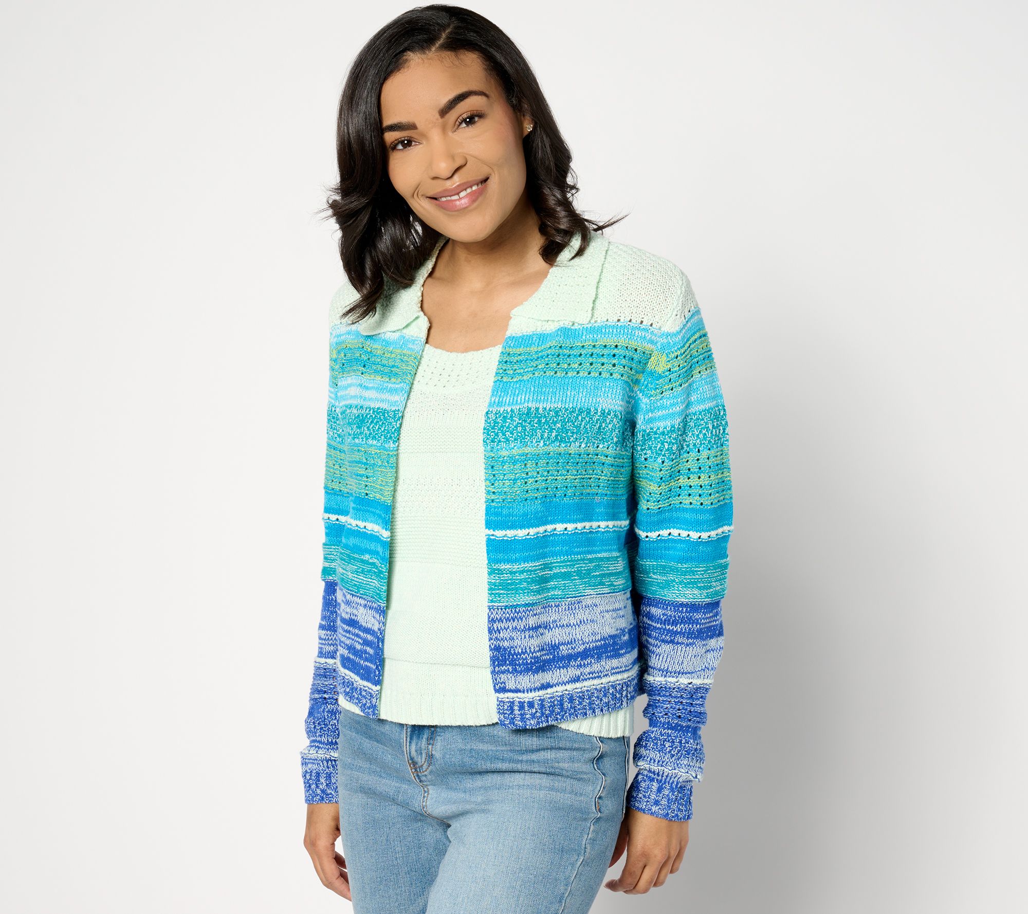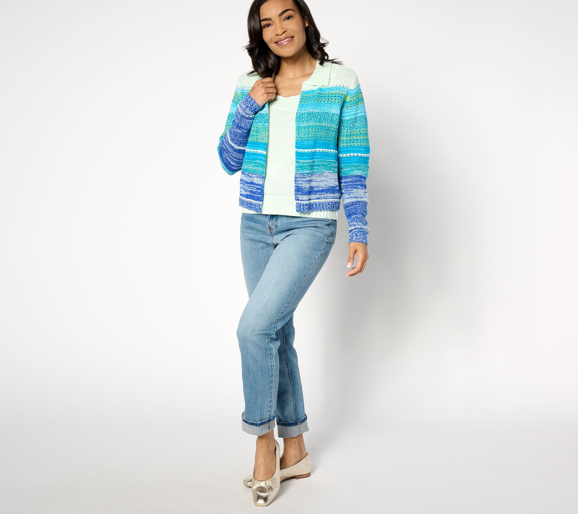 "As Is" Isaac Mizrahi Live! Open Front Stripe Cardigan with Collar