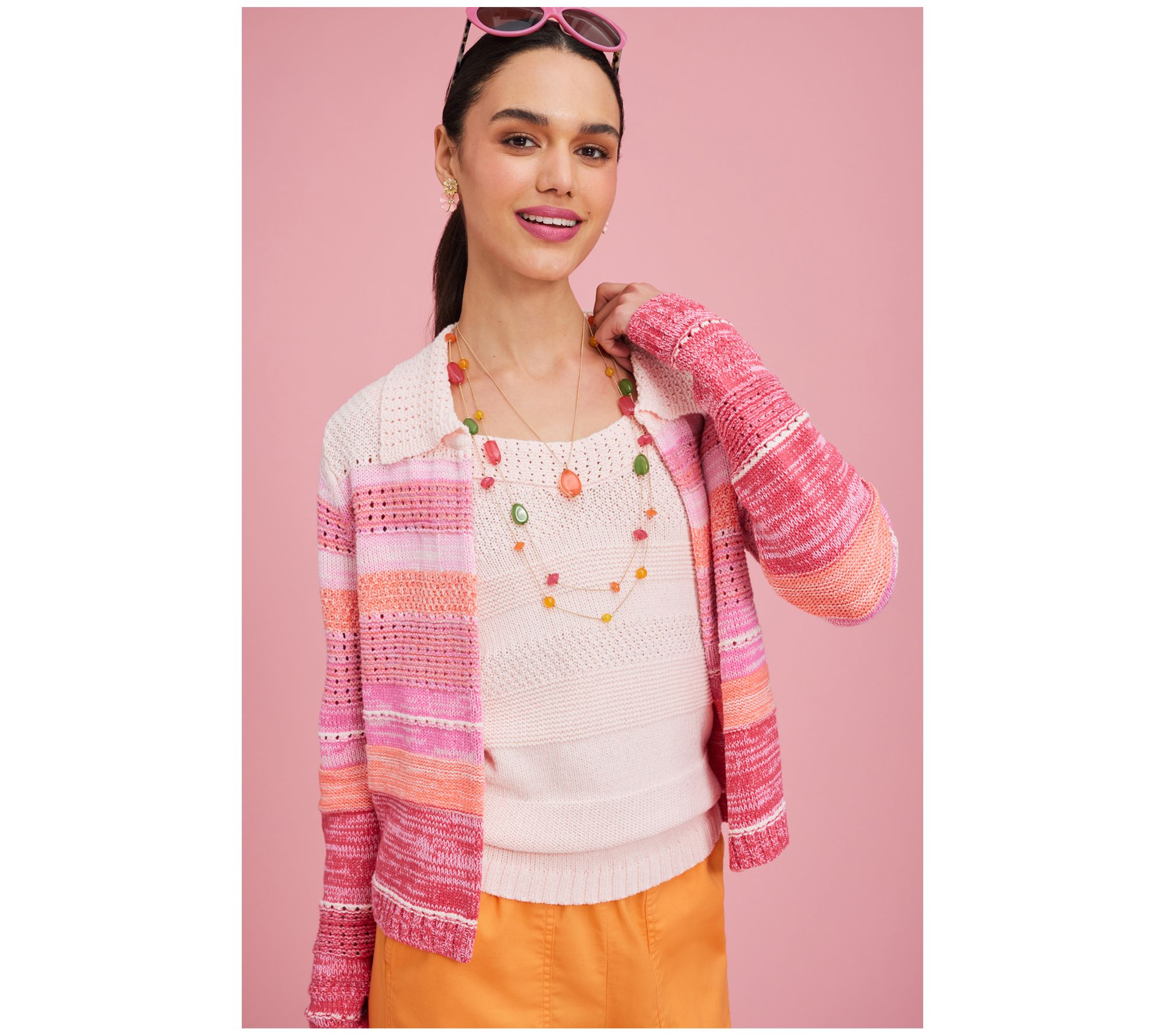 It's always sweater weather with this easy-breezy open front striped cardigan. From Isaac Mizrahi Live!TM.