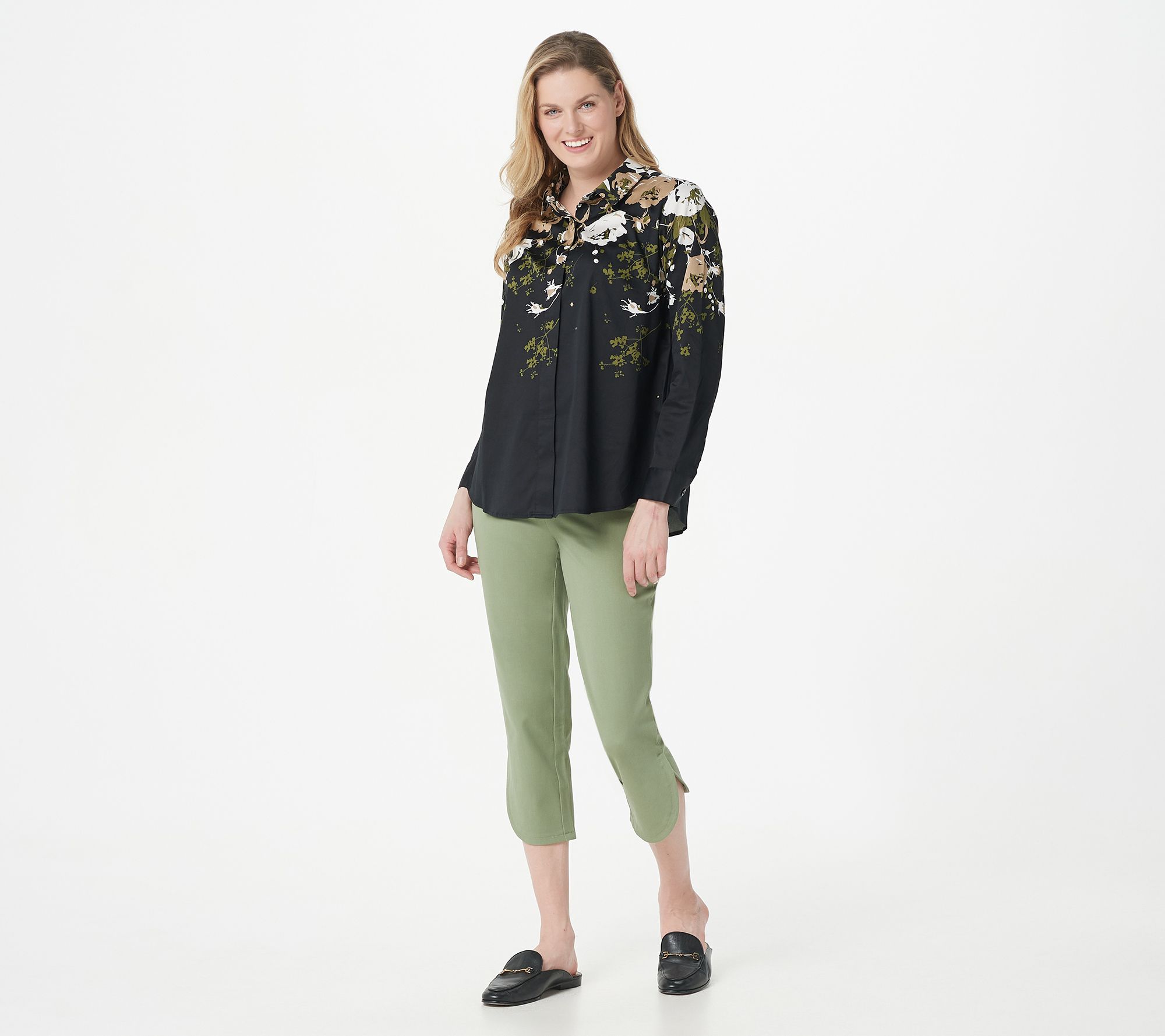 Add loads of laid-back luxe looks to your wardrobe with these 24/7 Stretch tulip hem cropped pants. From Isaac Mizrahi Live!TM.