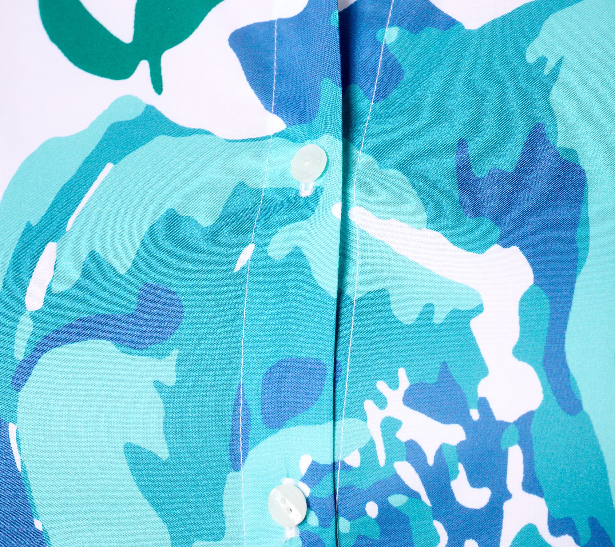 • Features: collar, center front placket with button closures, long sleeves with button cuff, side seam pocket, inverted pleat at center back, bust darts, hi-low shirttail hem, and generous side slits