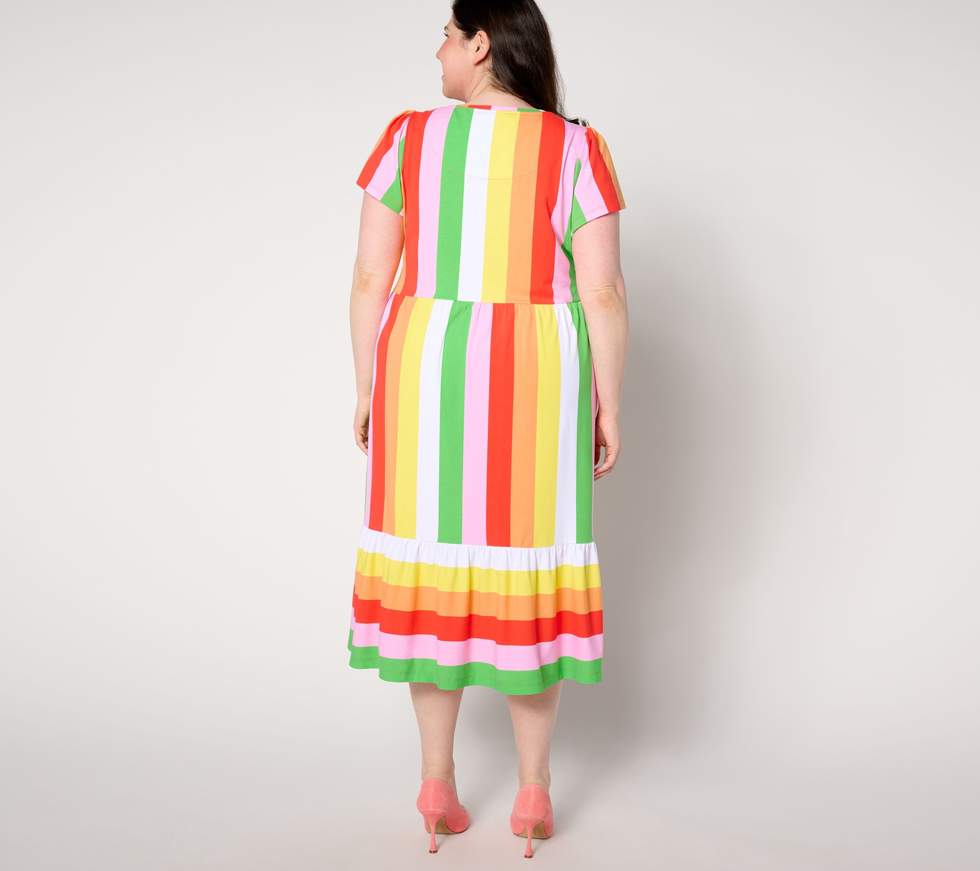 "As Is" Isaac Mizrahi Live! Petite Flutter Sleeve Tiered Midi Dress