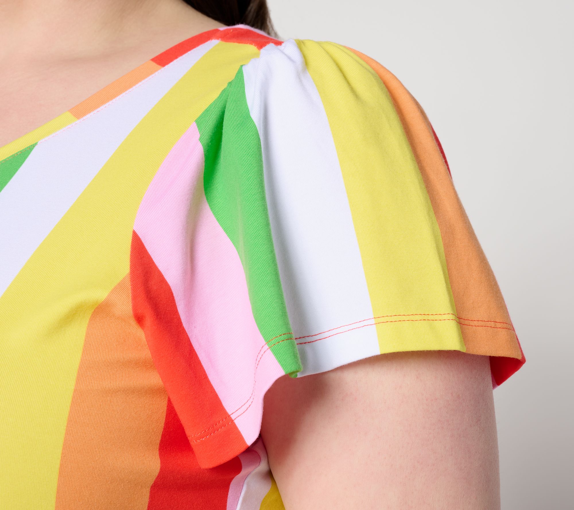 • Features: scoop neckline, short flutter sleeves, waist seam, tiered skirt, midi length
