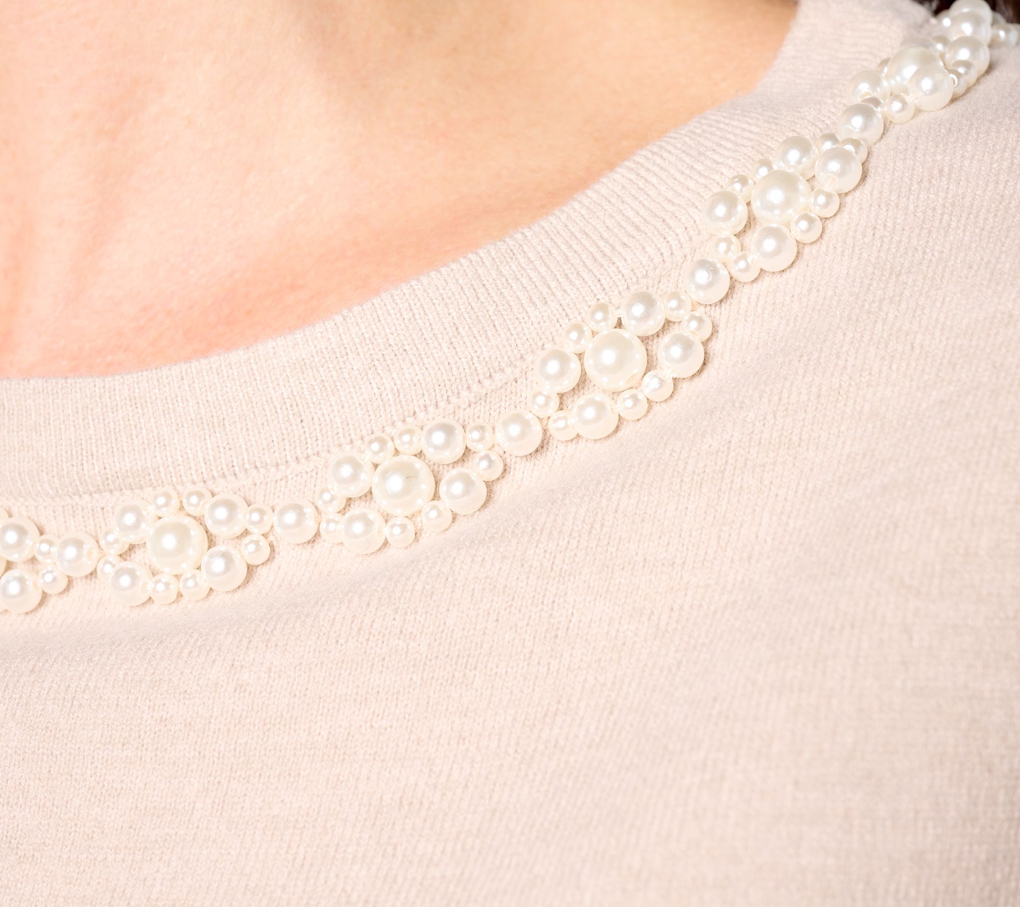 Old-school glamour? It's a vibe, darling! Embrace it in this faux-pearl trimmed top. From Isaac Mizrahi Live!TM.