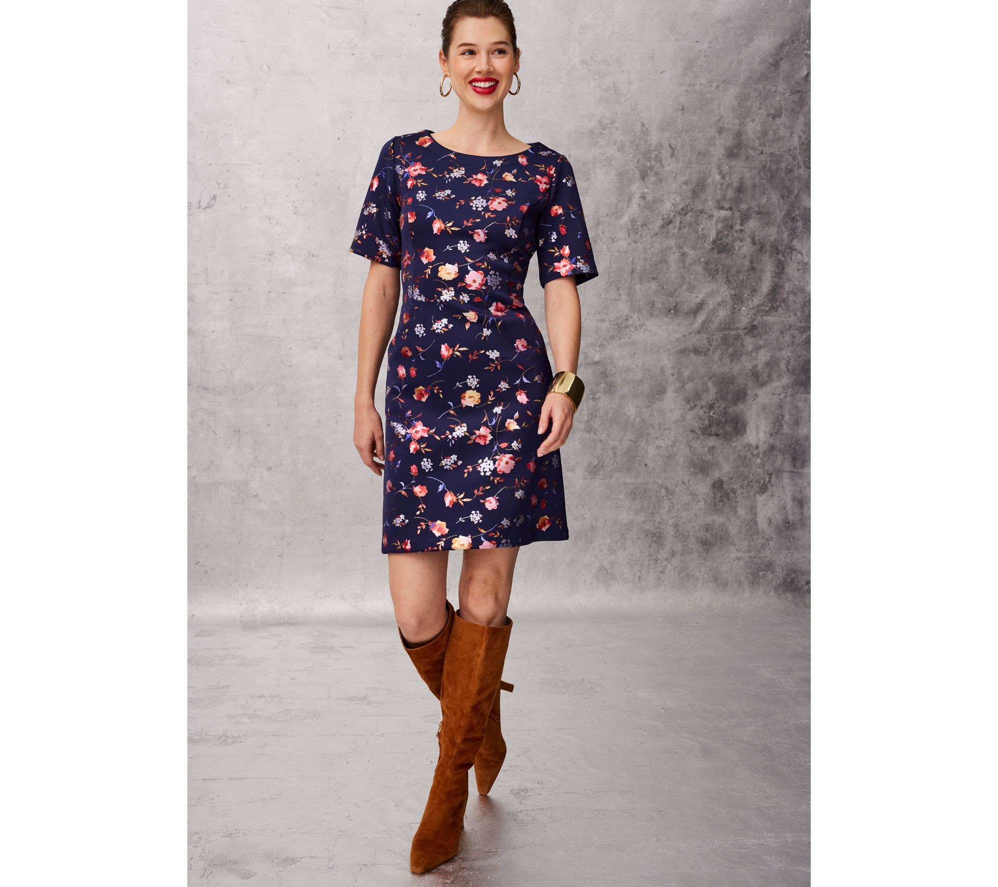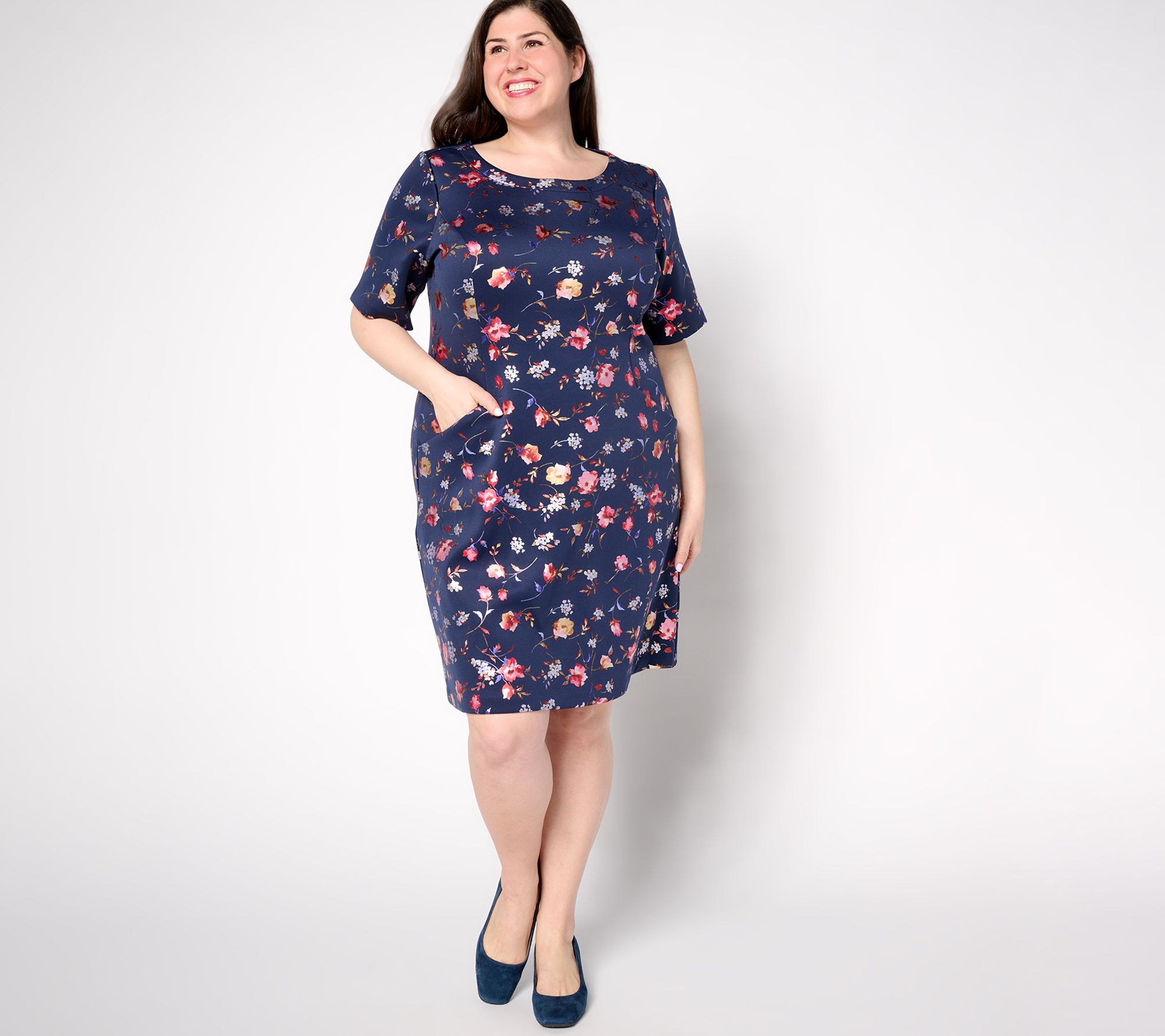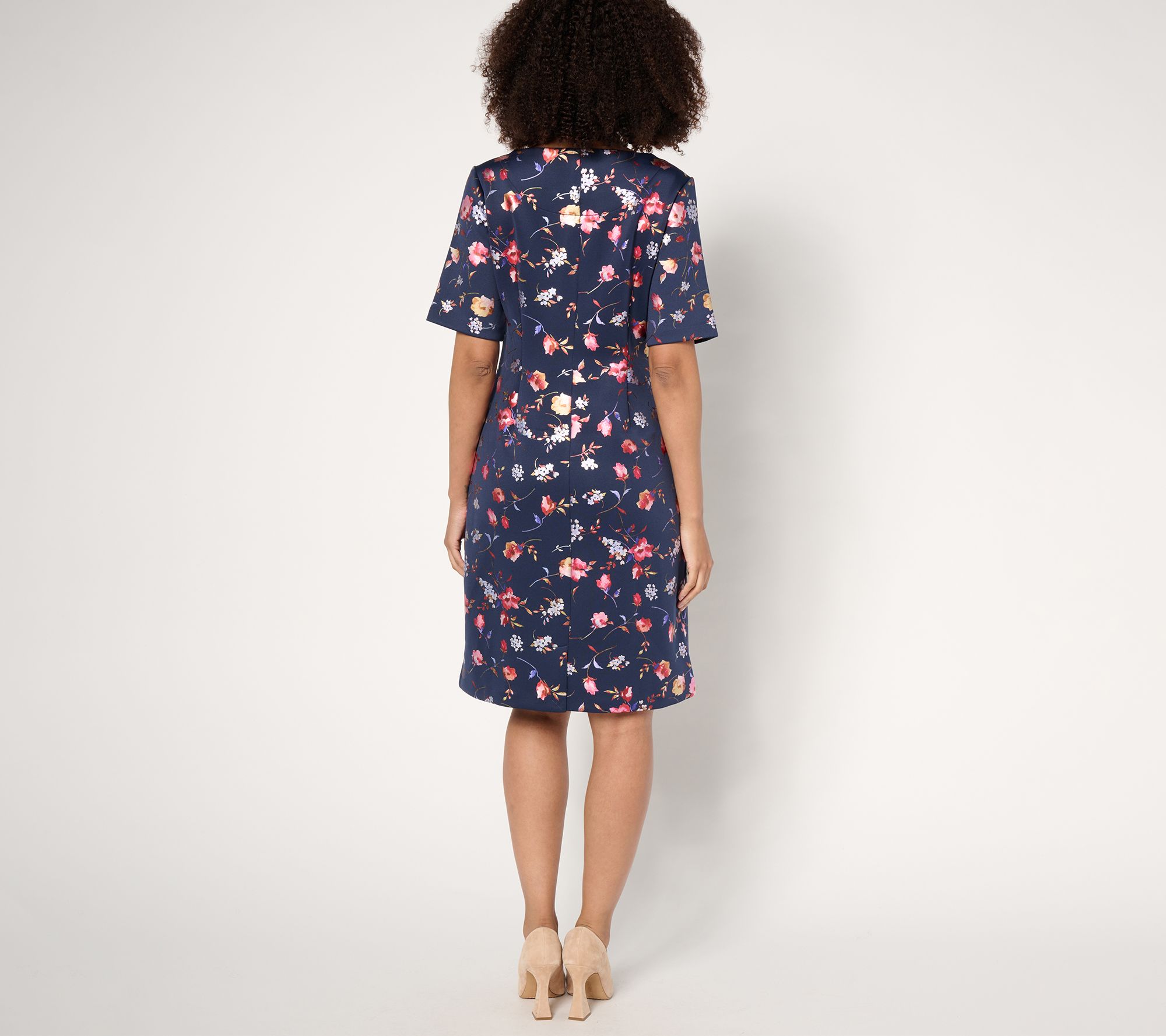 "As Is" Isaac Mizrahi Live! Petite Scuba Foil Printed Shift Dress
