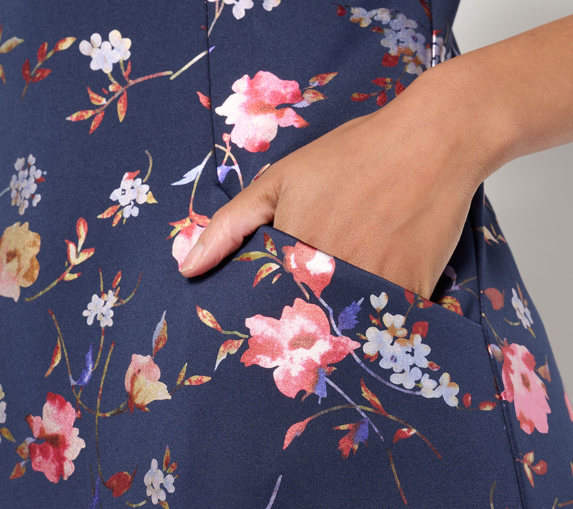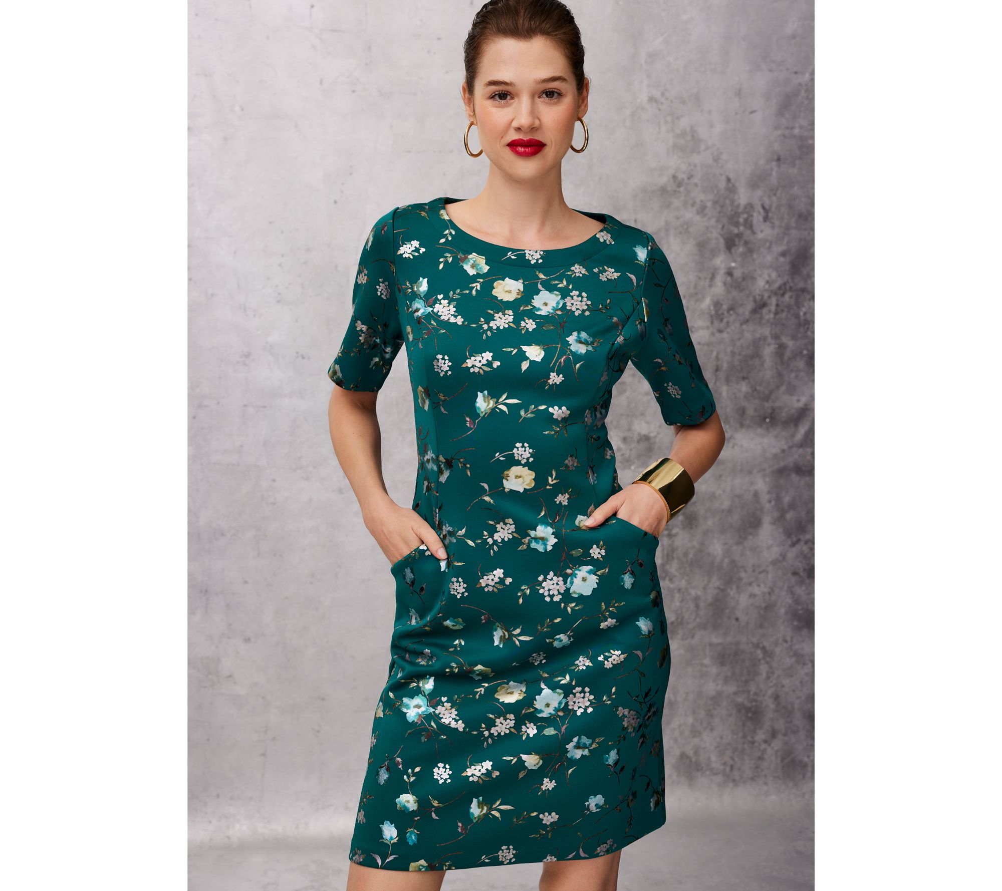 Reflect your joy for the season (and your social circle) in this shimmering shift with a foiled floral print. From Isaac Mizrahi Live!TM.