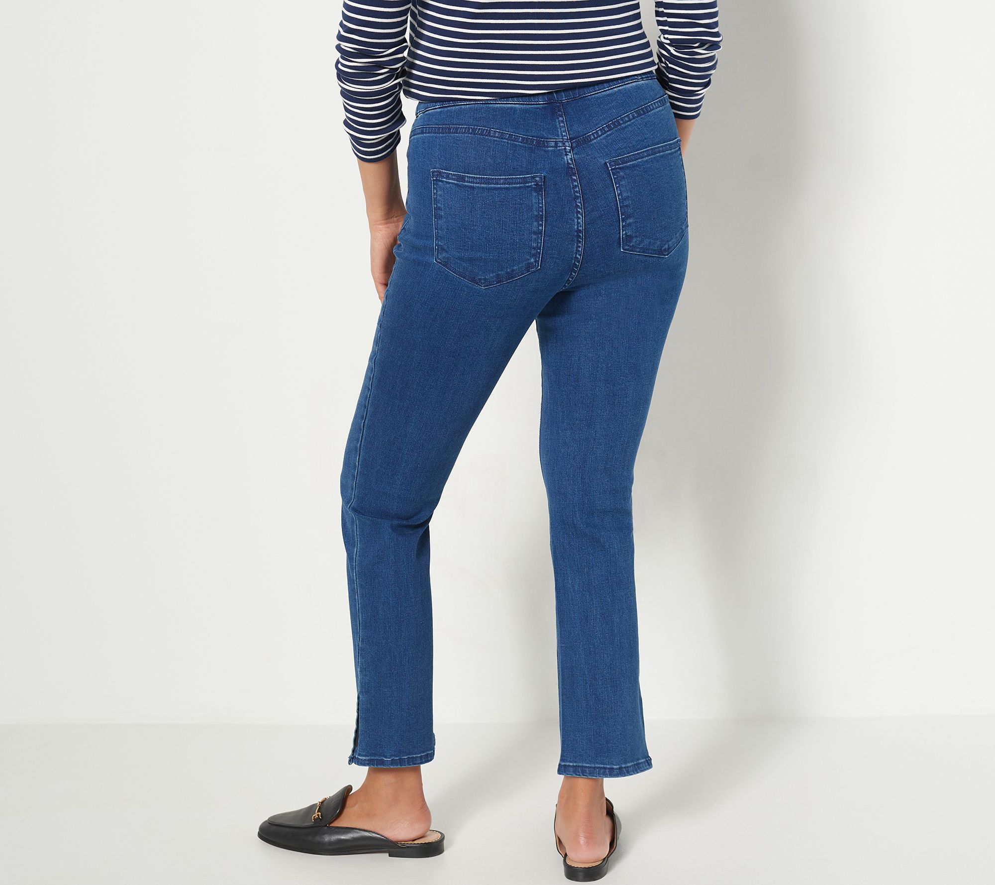 Favorite sweater, meet your new favorite pair of pants. With an easy pull-on style, frayed hem, and perfect shoe-showing length, these jeans are the be-all and end-all wardrobe staple. From Isaac Mizrahi Live!TM.