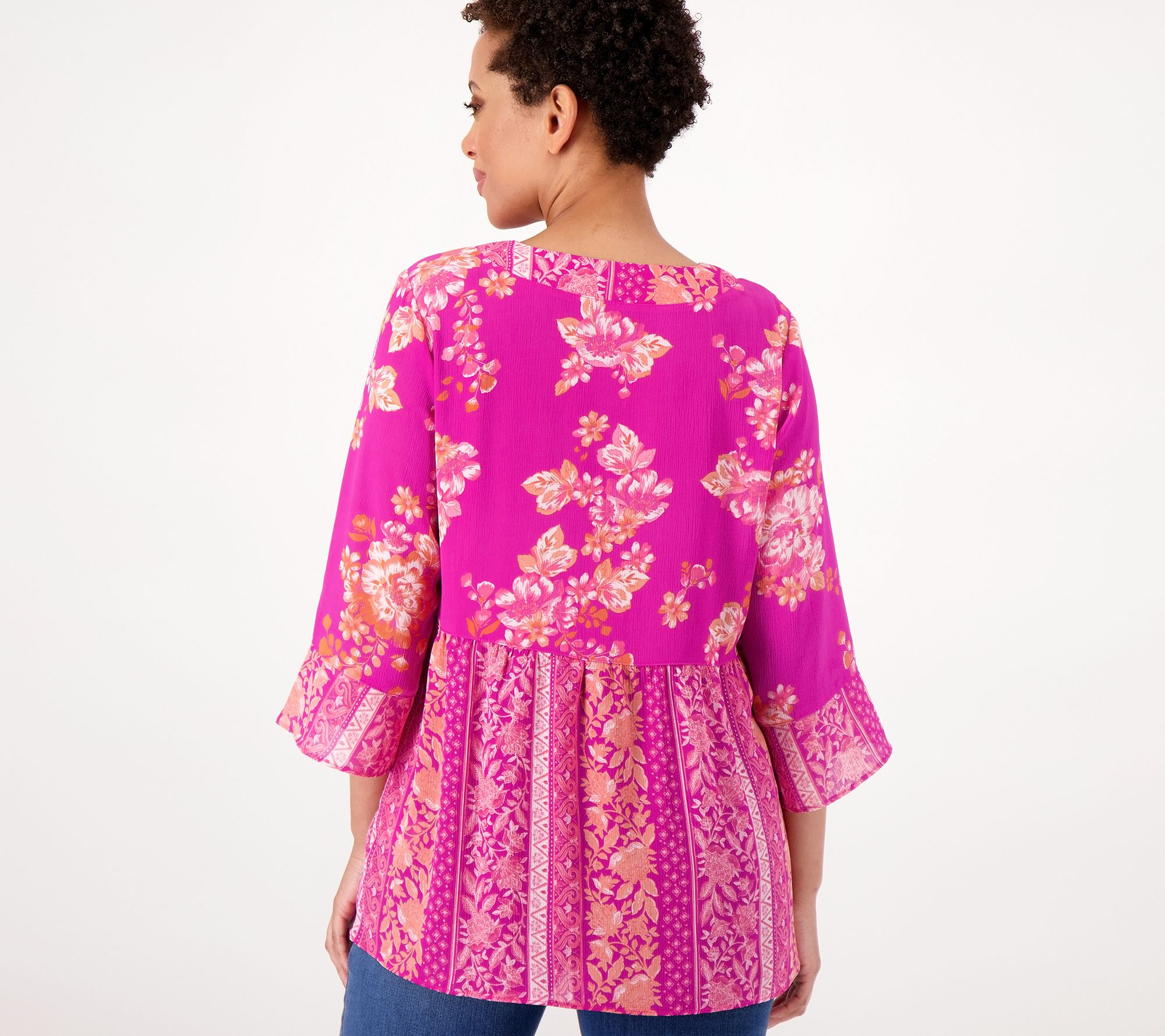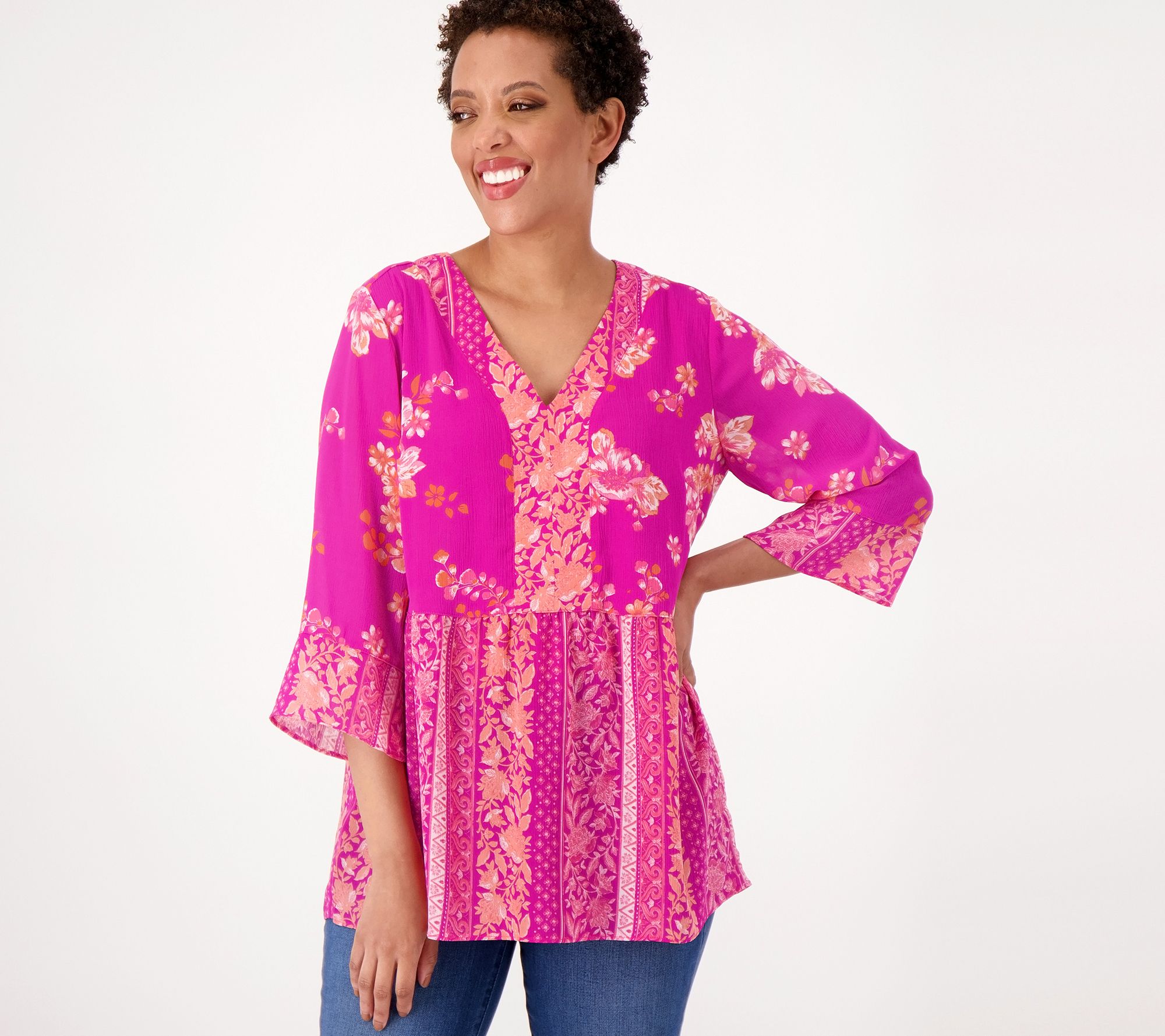 "As Is" Isaac Mizrahi Live! Printed Crinkle Chiffon Blouse