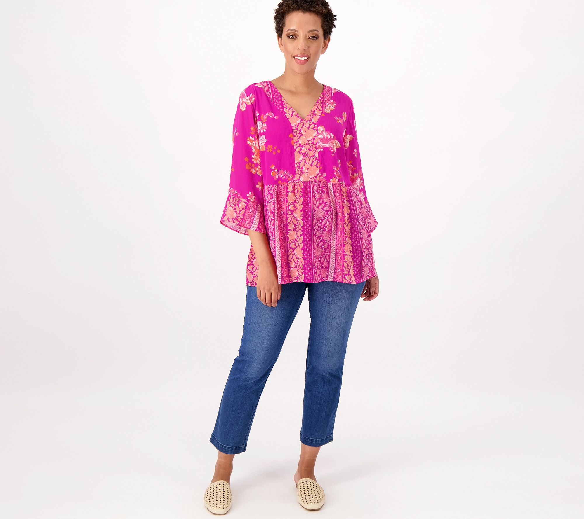 Jazz up that daily fashion rotation with this brightly colored chiffon blouse. Pair it with jeans and your cutest wedges to spruce up the energy at the office. From Isaac Mizrahi Live!TM.