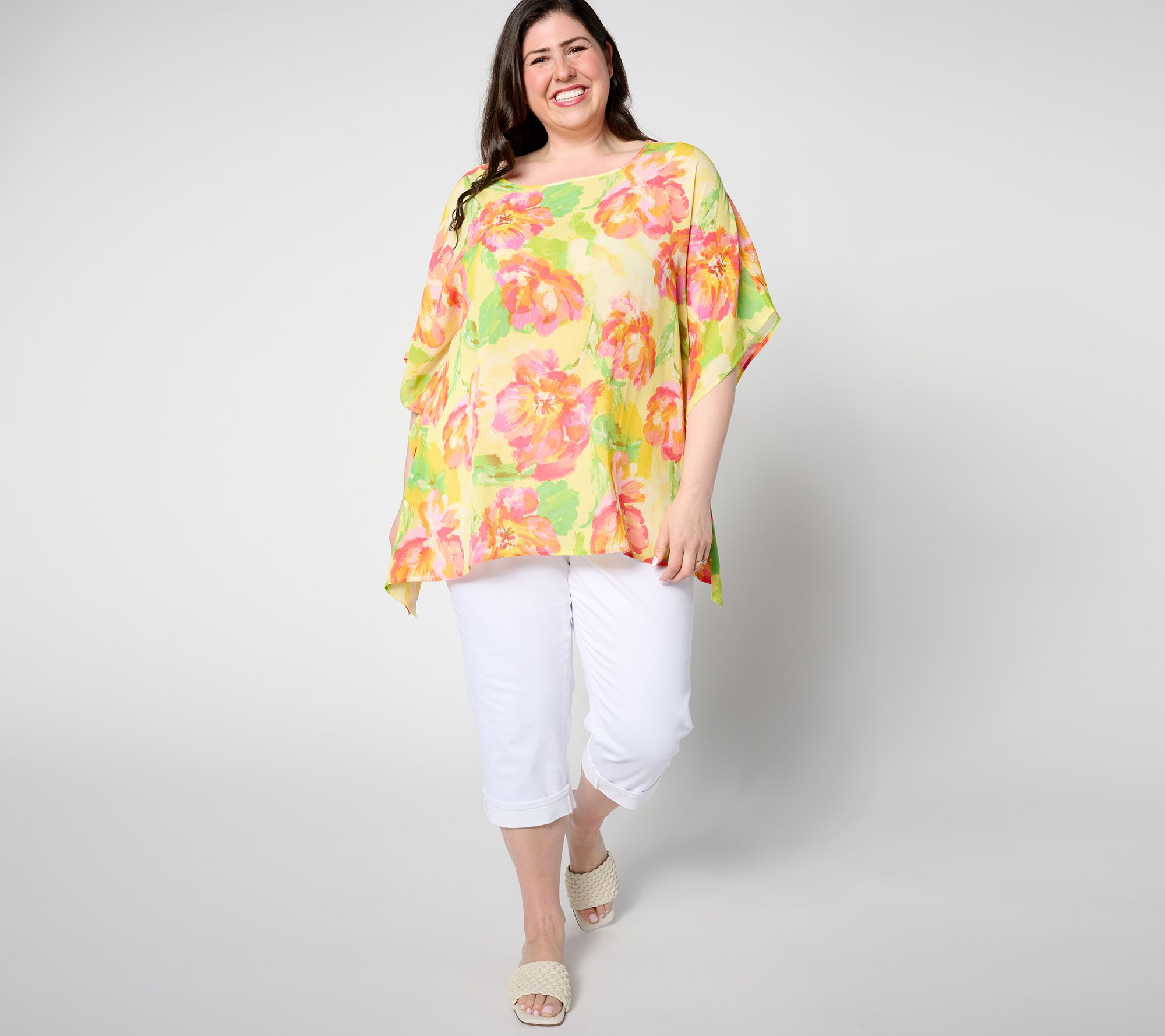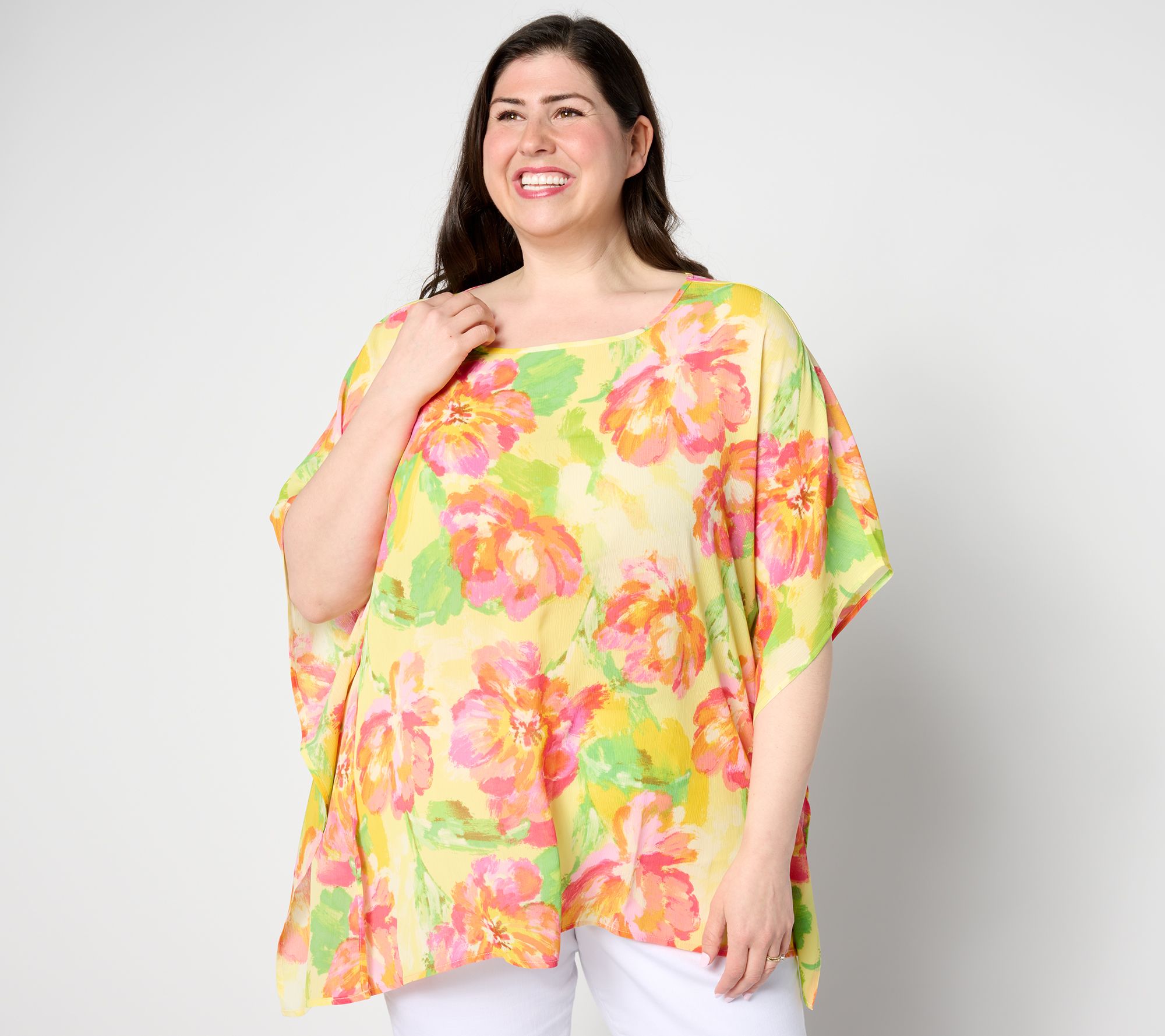 This pretty printed scarf top gracefully drapes over the body, with a relaxed fit for ease of movement and an effortlessly elegant style. From Isaac Mizrahi Live!TM.
