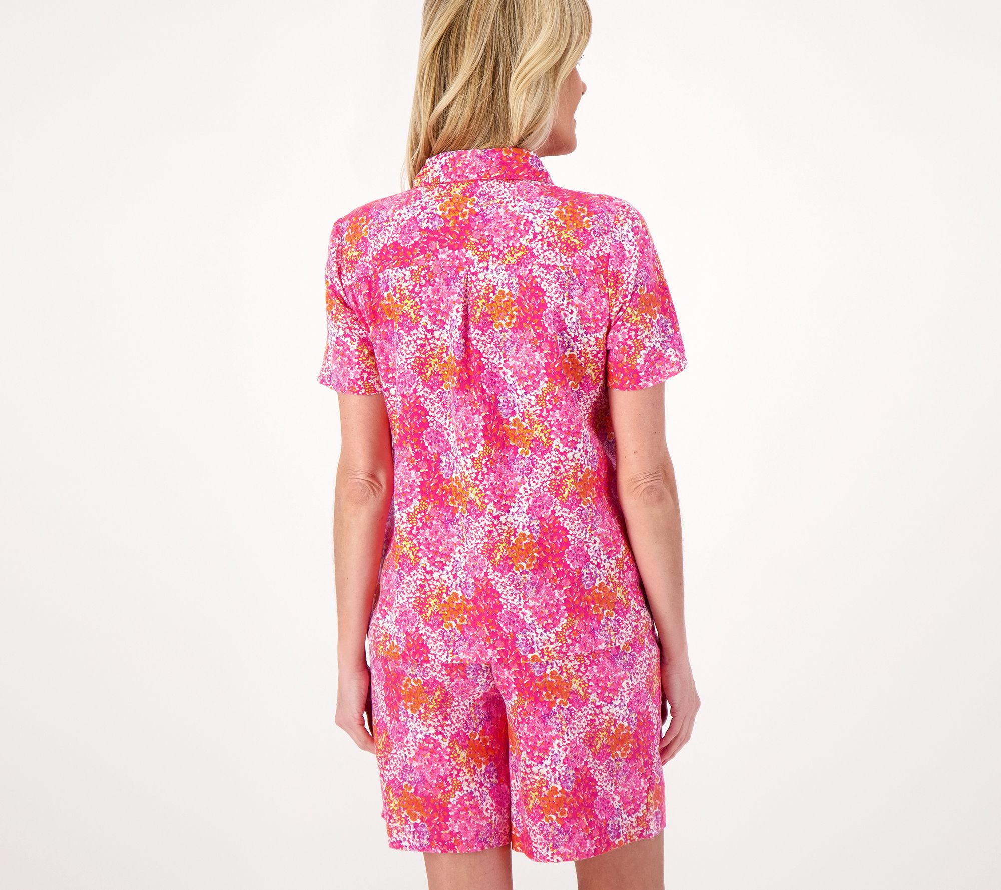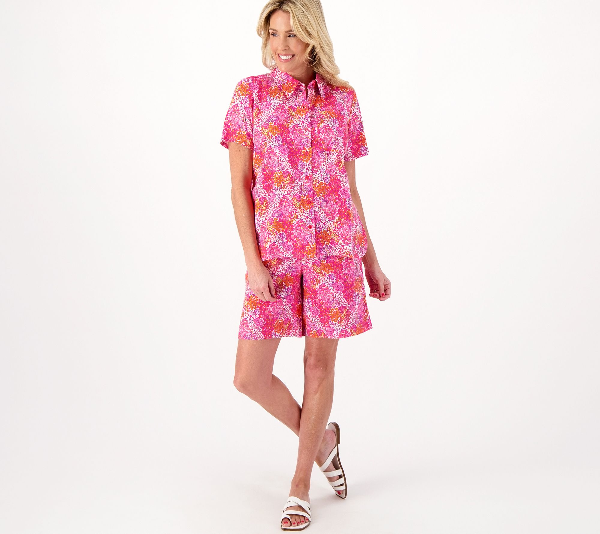 "As Is" Isaac Mizrahi Live! Printed Linen Button Front Resort Shirt