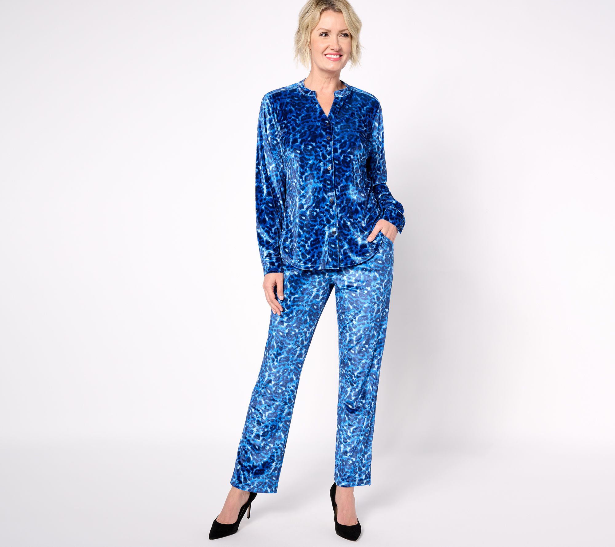"As Is" Isaac Mizrahi Live! Printed Stretch Velvet Button Front Top